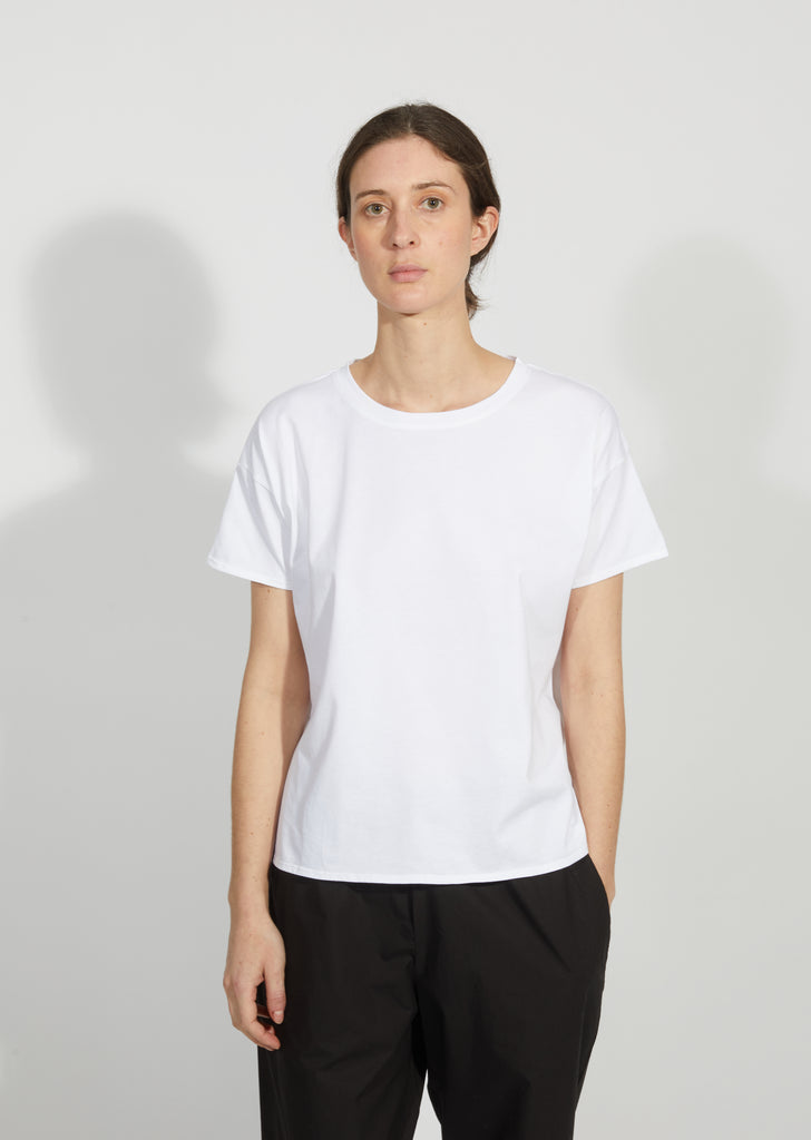 White short-sleeve cotton T-shirt in Supima-cotton jersey, finished at the hem with the brand’s signature seashell-logo embroidery.
