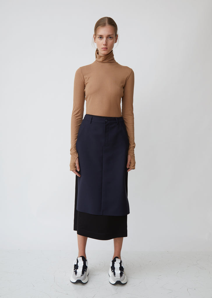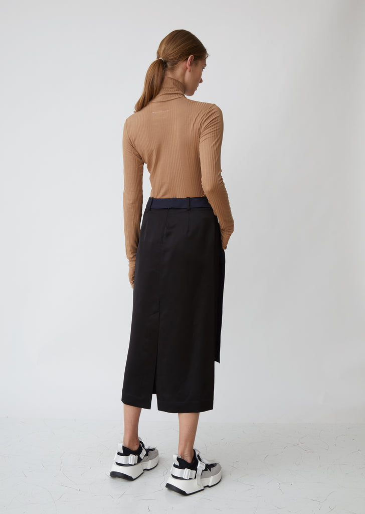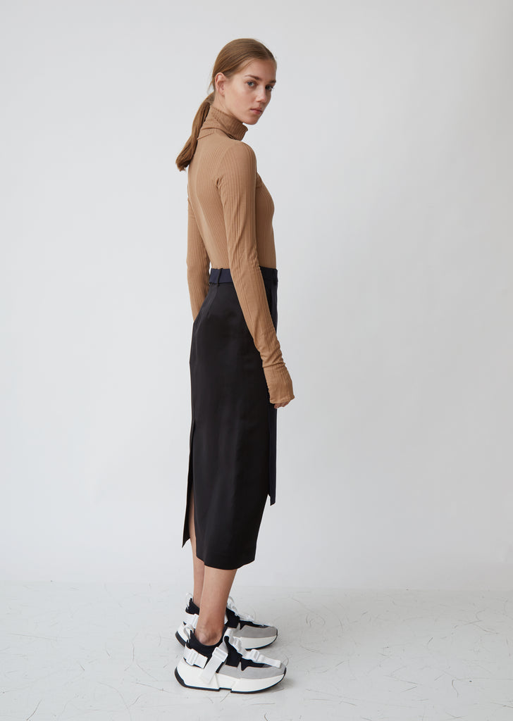 A balletic bodysuit that offers a form-fitting neutral base layer for Maison Margiela's more deconstructed designs. Turtleneck. Long sleeves. Medium-cut leg. Ribbed knit fabric. Color: Nude. 96% Lyocell, 4% Elastane. Dry Clean. Made in Italy.