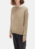 Pure Shetland wool straight-neck pullover sweater in String. Classic fit with slightly dropped shoulders. Rib trim at neckline, hem, and cuffs. Color: String. 100% British Wool. Imported.