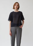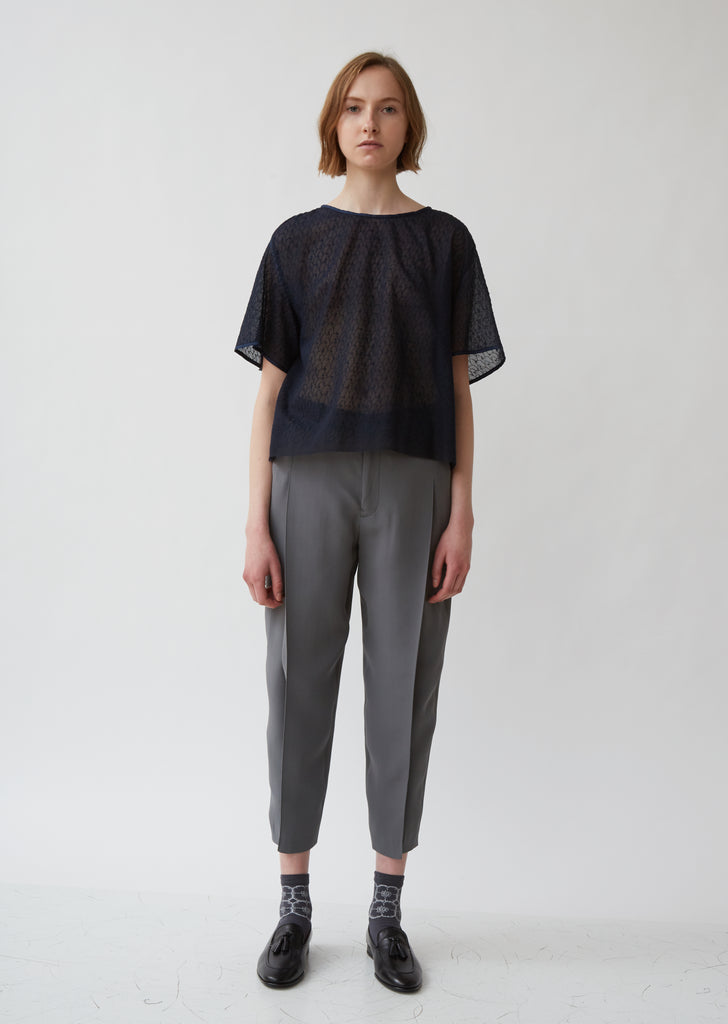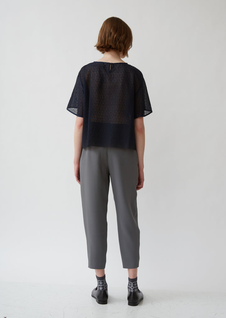 A T-shirt-style top with an all-over embroidered bird design (lintu means "bird" in Finnish). From Minä Perhonen, whose design philosophy states that beautiful fabrics and innovative techniques make for clothes that stand the test of time. Relaxed fit. Round neck. Dropped shoulders.Tonal piping at neck and sleeves. Color: Navy. 100% Silk. Made in Japan.