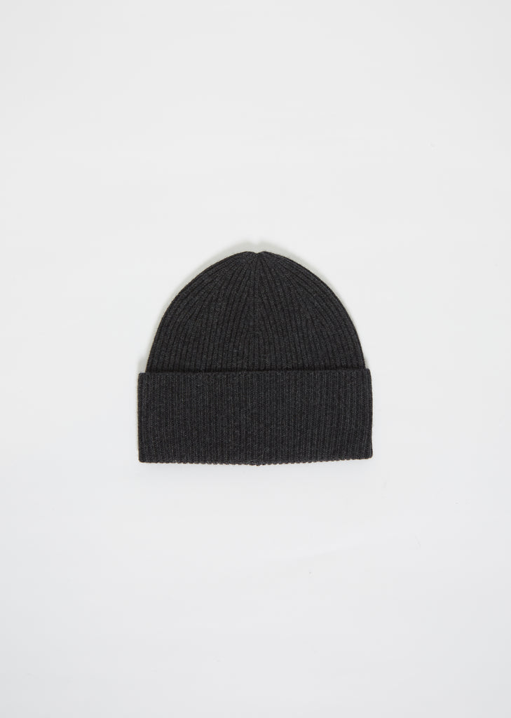 Wool Cashmere Knit Beanie — Dark Grey Melange