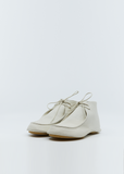 The Row lace-up moccasin in grained goatskin leather with two piece rubber sole.