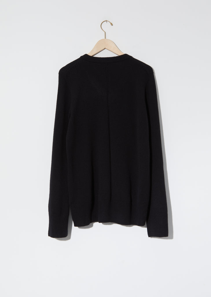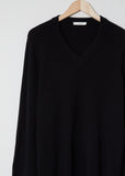 The Row Elaine Sweater in Black. Crafted in a wool-cashmere blend knit, V-neck sweater with an oversized fit and loose, extended sleeves.