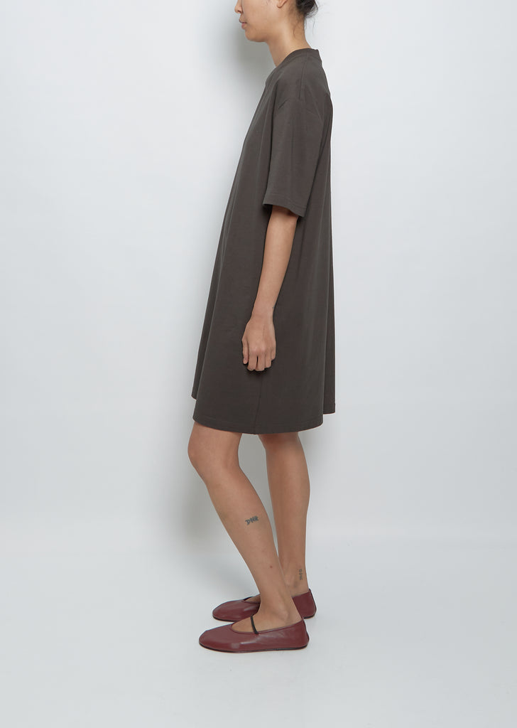 The Row charcoal grey extra-long short-sleeve t-shirt in soft cotton jersey with oversized silhouette and ribbed neckline.