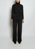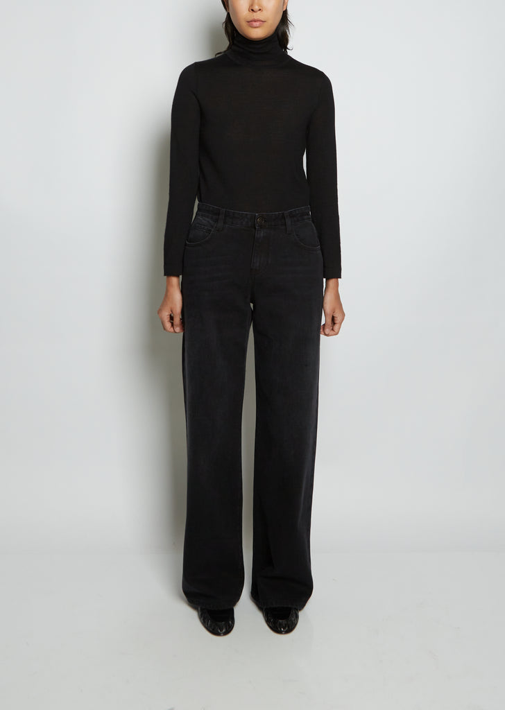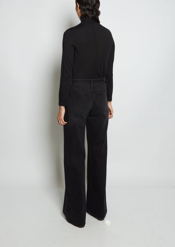 The Row black extra low-rise jeans in mid-weight cotton denim with traditional 5-pocket styling.