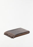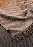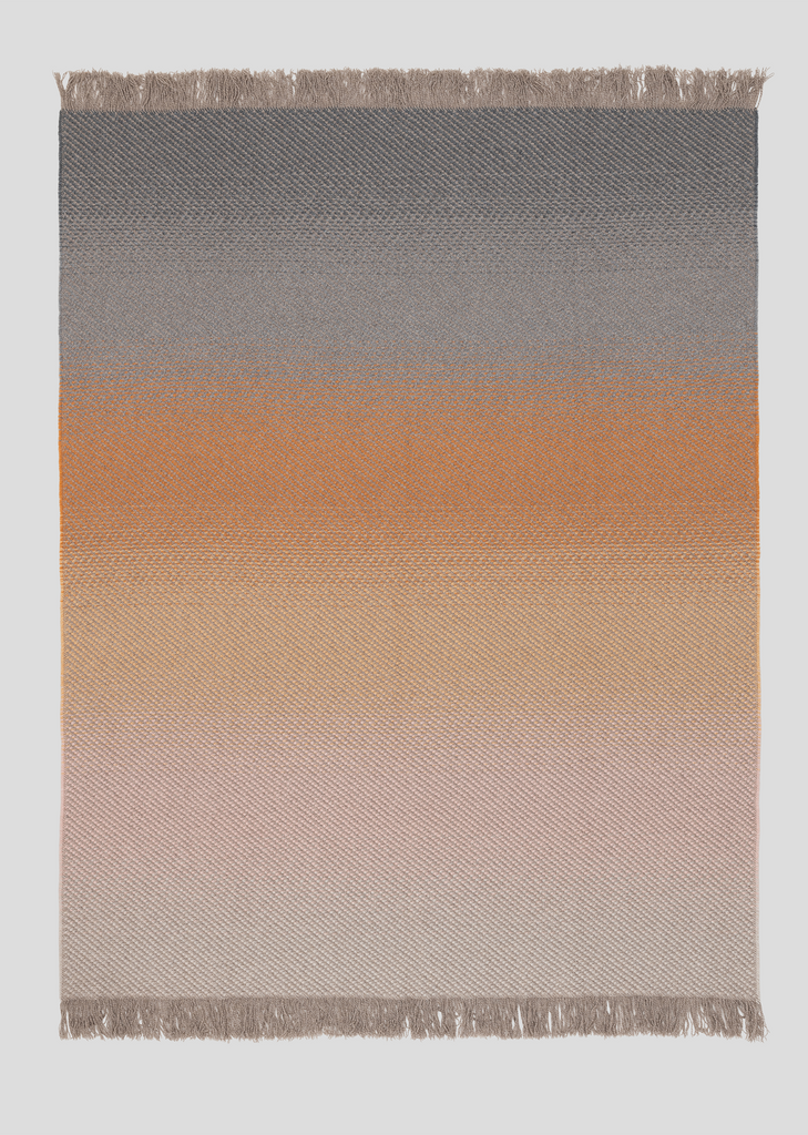 Begg x Co multicolored ombre blanket with a rectangular shape in mid-gauge textured cashmere knit. Finished with fringed edges.