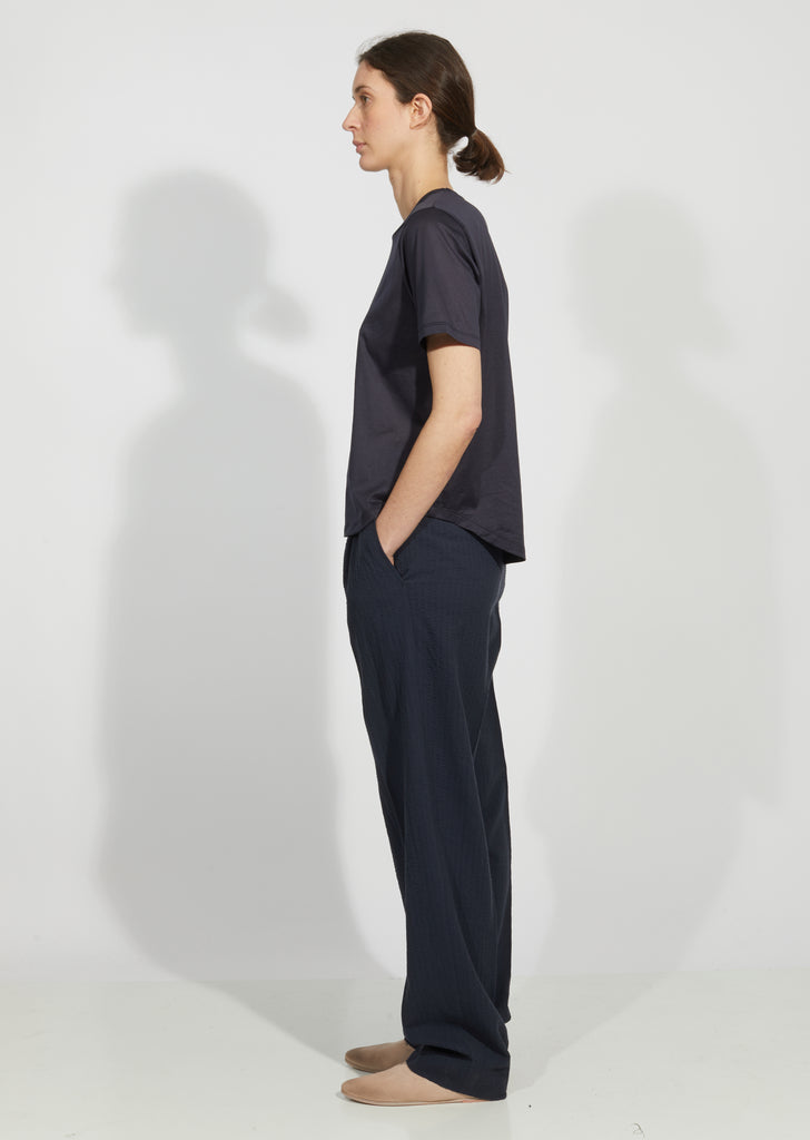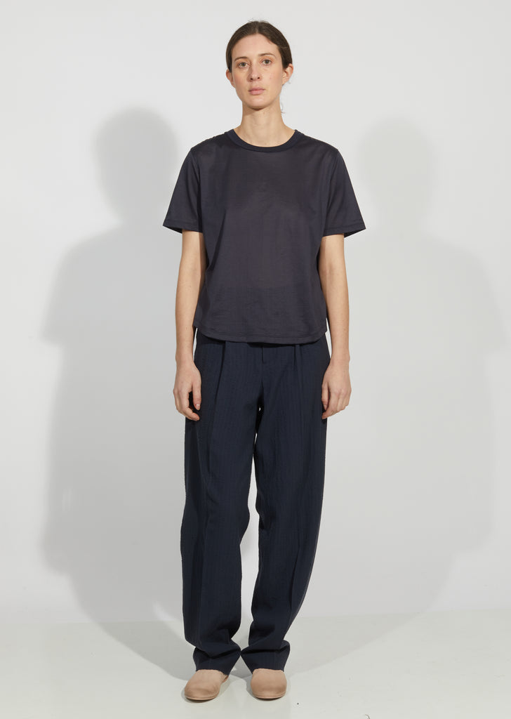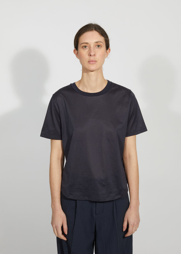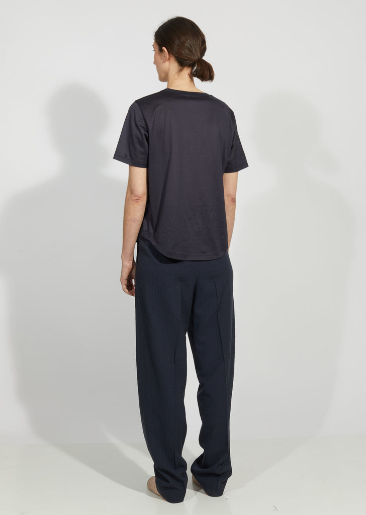 Blue-grey short-sleeve T-shirt crafted of fine wool jersey.