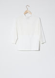 Stephan Schneider Dot Top in White. Classic popover shirt from the label, with a clean finish V-neckline and cropped dolman sleeves, and a back panel with two fabrics seamed together; ivory-toned brushed cotton at top and white cotton & viscose twill at the bottom.