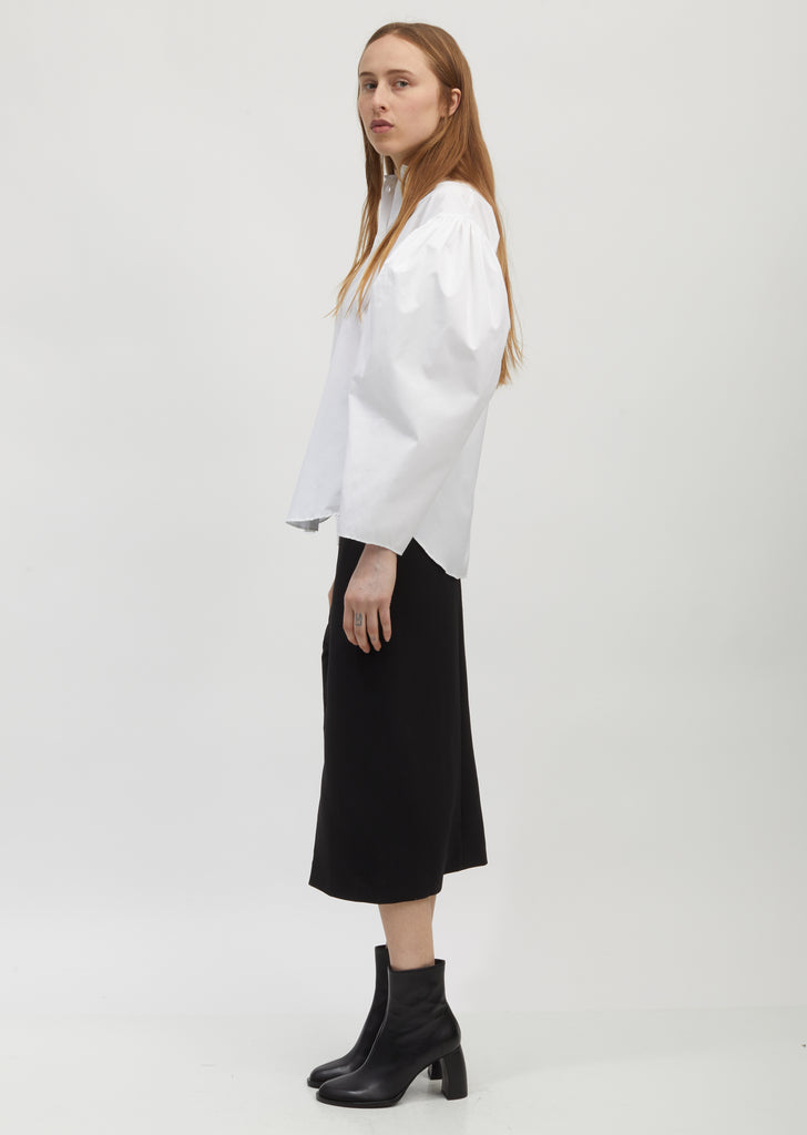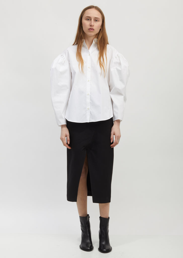 White balloon-sleeve shirt cut from crisp cotton poplin, finished with tonal corozo buttons.