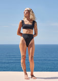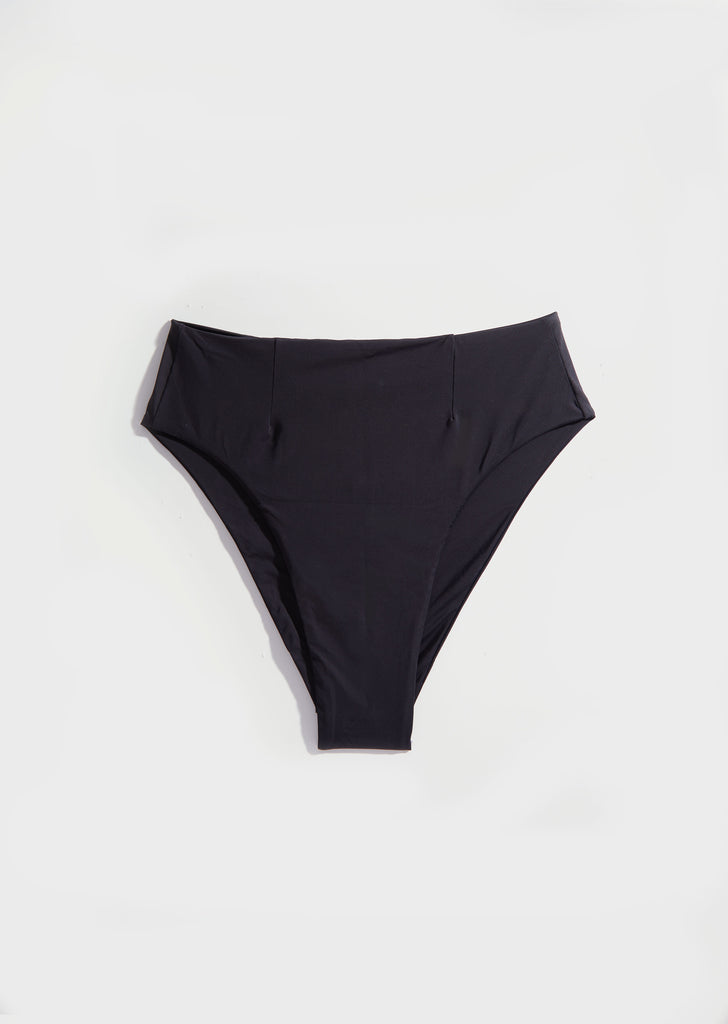 Haight Manu Highleg Hotpants in black. Crafted in Brazil with technical jersey these high-rise bikini briefs feature high-cut legs and dart detailing for support.