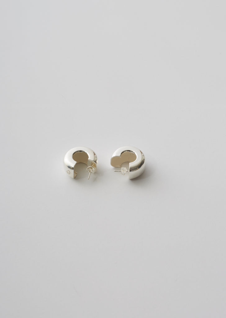 Carved-edge, brushed-finish hoop earrings in recycled sterling silver. Handcrafted in Stockholm and discreetly engraved with an All Blues logo.