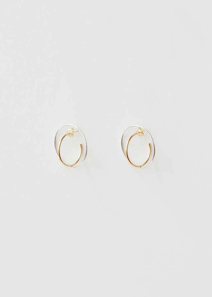 Signature medium 'saturn' earrings with orbiting, interlocking circles in 18K yellow gold vermeil and sterling silver. Sold as a pair. Post back. Made in France.