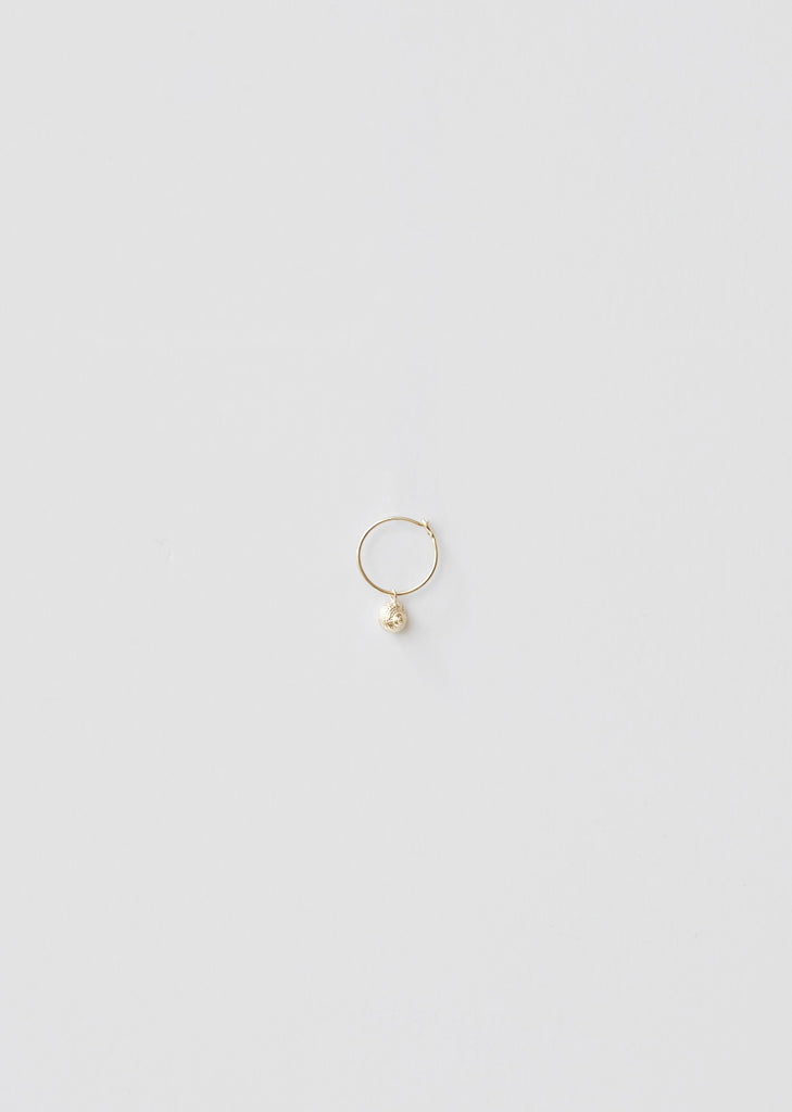Gold single hoop earring with seashell charm. 14K Yellow Gold. Made in Copenhagen, Denmark.