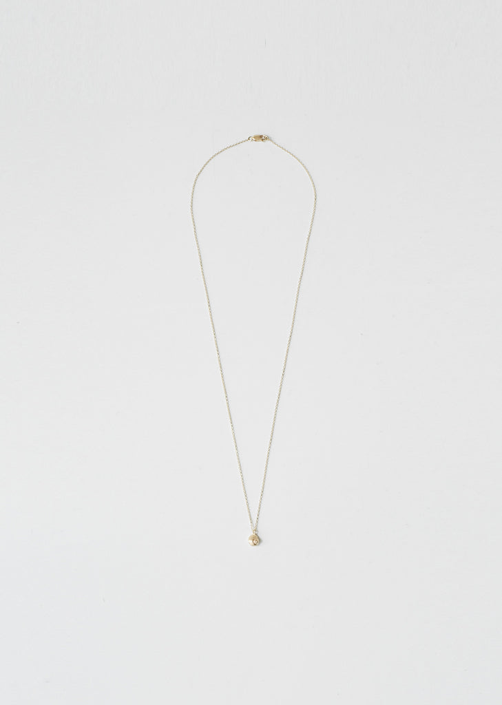 Gold chain necklace with an seashell shape pendant. Chain length measures 16.5 inches (42 cm). 14K Yellow Gold. Made in Copenhagen, Denmark.