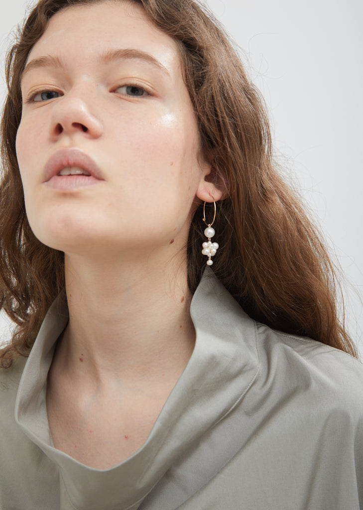 The label's Botticelli single earring features a delicate cluster of freshwater pearls suspended from a slim 14k gold hoop. This elegant piece is crafted for pierced ears with post fastening. Drop: 2.2". Color: Yellow Gold. 14K Gold, Freshwater Pearls. Imported.