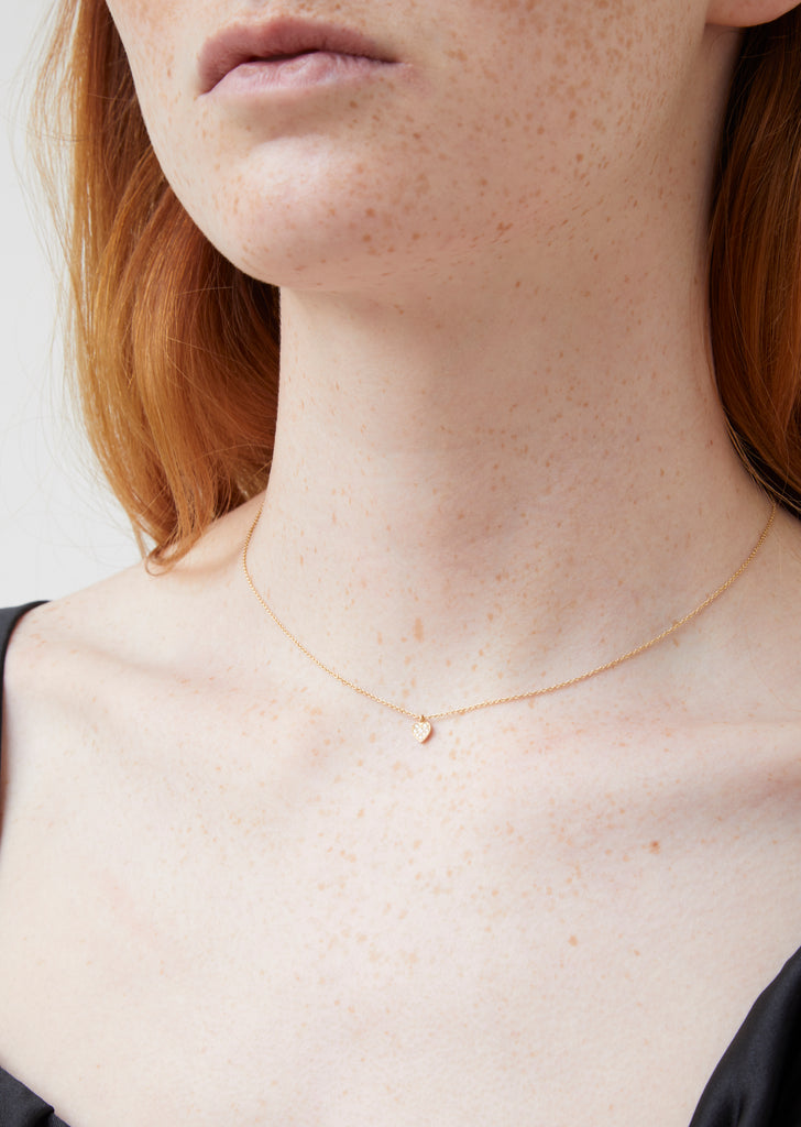 18-karat-yellow-gold chain-link necklace adorned with a heart-shaped pendant set with eight diamonds in several sizes. 0.05-carat of Top Wesselton VVS diamonds. Hook-and-ring closure.