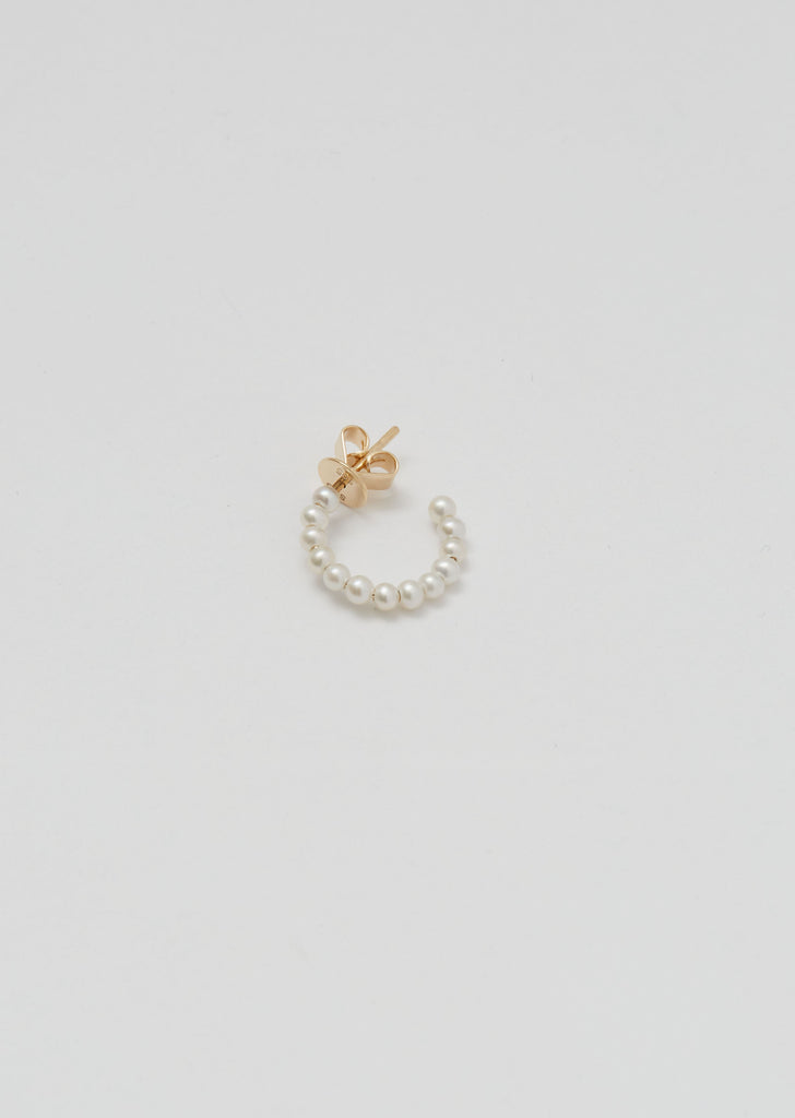 Sophie Bille Brahe small and delicate hoop earrings crafted in 14K yellow gold, featuring small freshwater pearls.