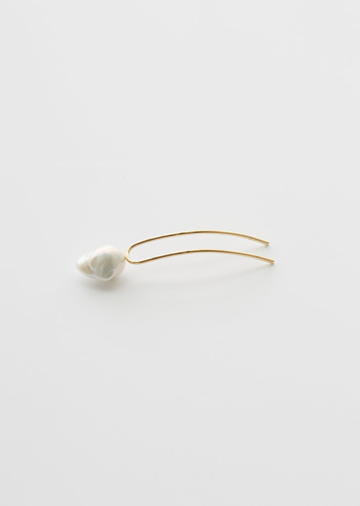 10-karat-yellow-gold hair slide festooned with a freshwater baroque pearl.