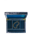 Sophie Bille Brahe plush silk velvet jewelry box in Blue. Features four compartments for organizing and keeping jewelry separated.