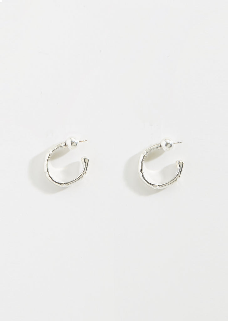 Sophie Buhai updated the classic hoop earring, rendering this delicate pair from sterling silver. Fashioned with the look of bamboo, these earrings are simple and elegant with blackened details. Crafted for pierced ears with post-back fastening. 100% Sterling Silver. Handmade in the U.S.