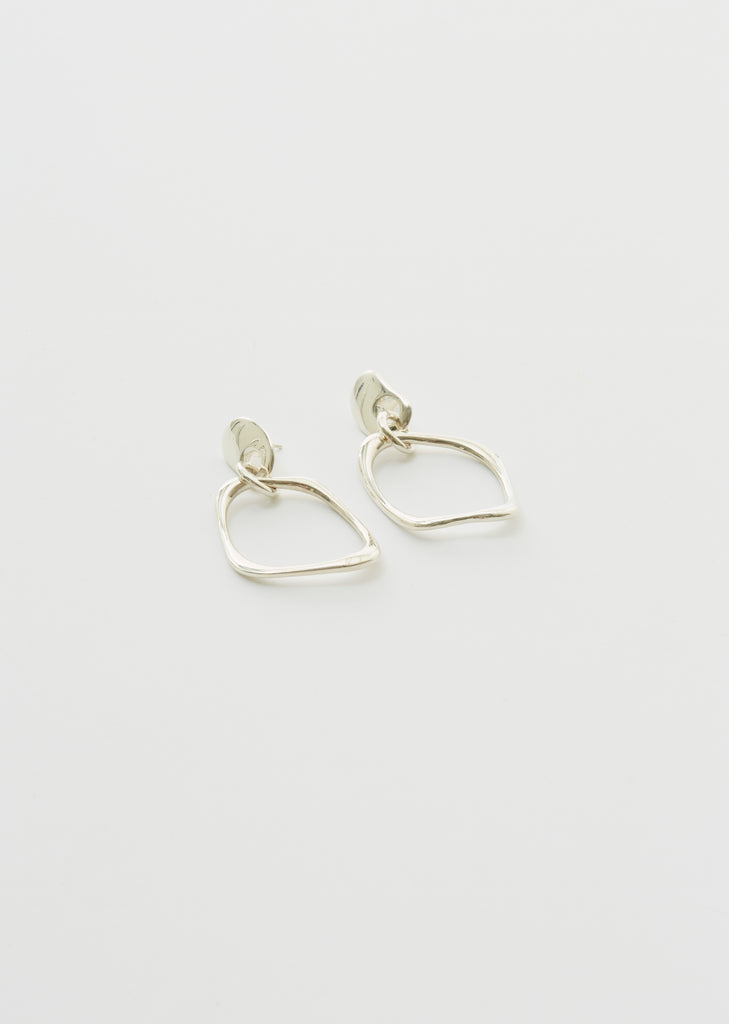 Sterling-silver open-teardrop earrings in an organic interlocking-loop silhouette. 2" drop. Post-back closure.