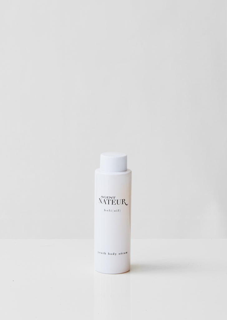 The label's HOLI(OIL) Youth body serum is a penetrating formula for the skin to help tighten, hydrate, reduce cellulite, heal scars, and treat body acne and sun damage. The potent formula treats hyper-pigmentation, dark spots, and naturally boosts collagen.