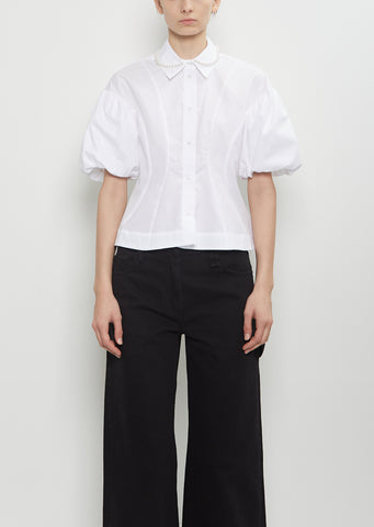 Cotton Puff Sleeve Embellishment Shirt