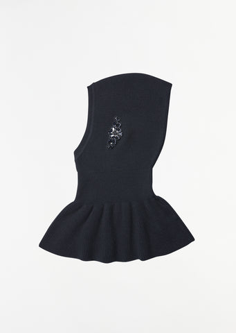 Turbo Embellished Pointed Merino Silk Knit Balaclava — Black