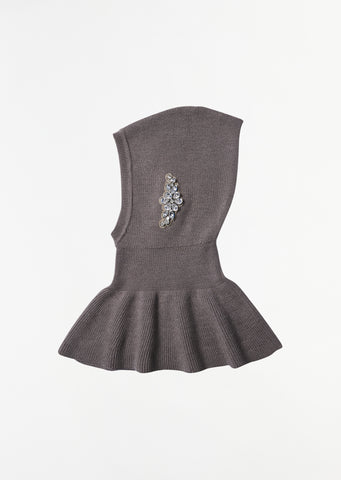 Turbo Embellished Pointed Merino Silk Knit Balaclava — Clay