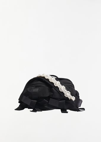 Beaded Classic Bow Crossbody Bag — Black