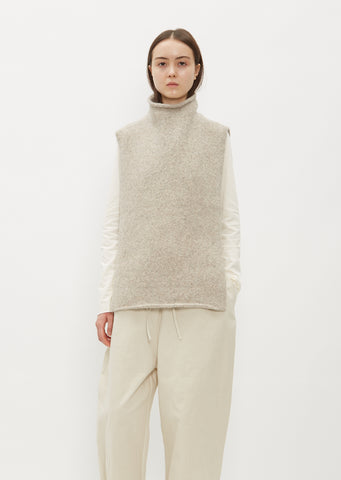 Linen Cashmere Silk T-Neck Sleeveless Sweater — White