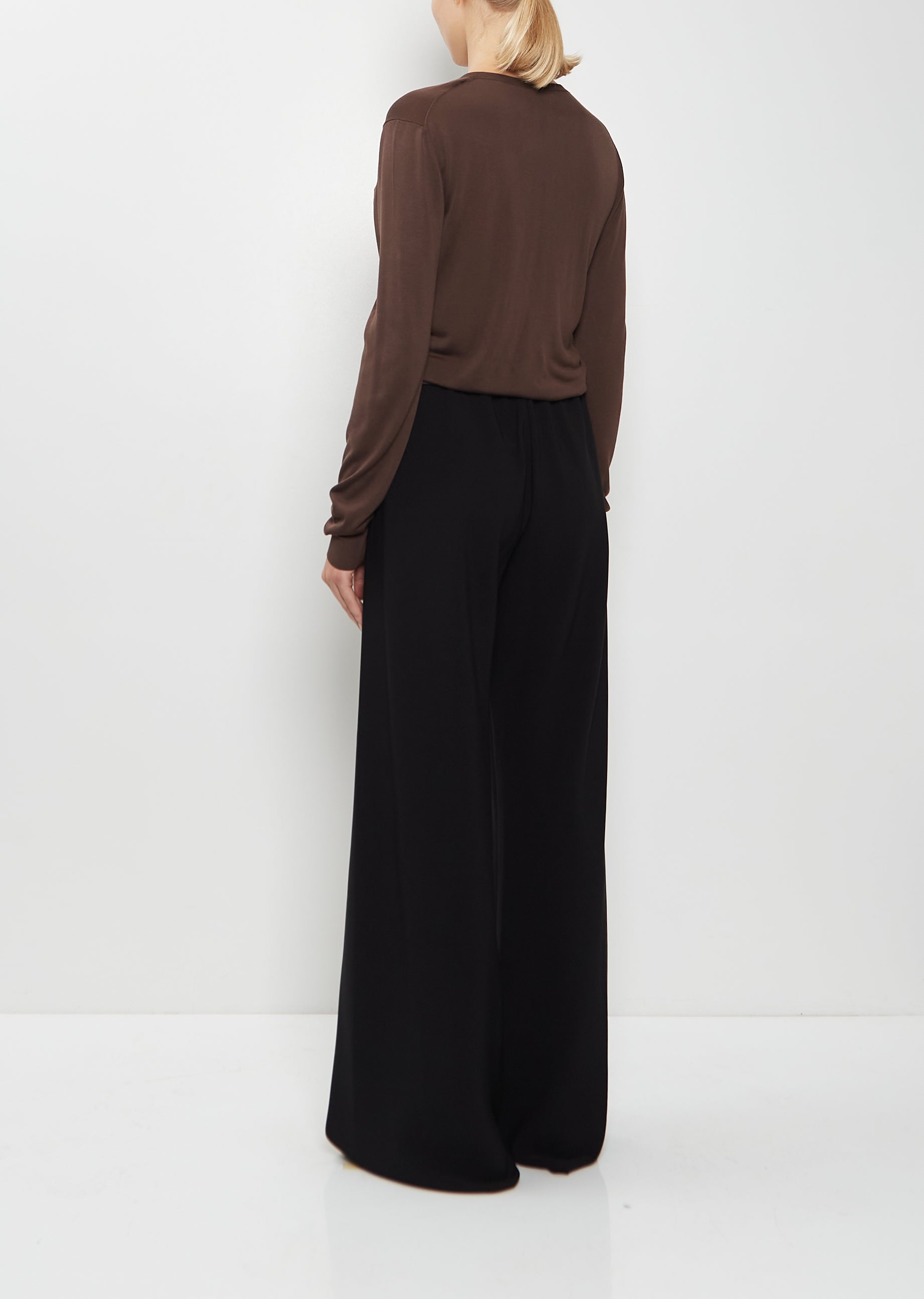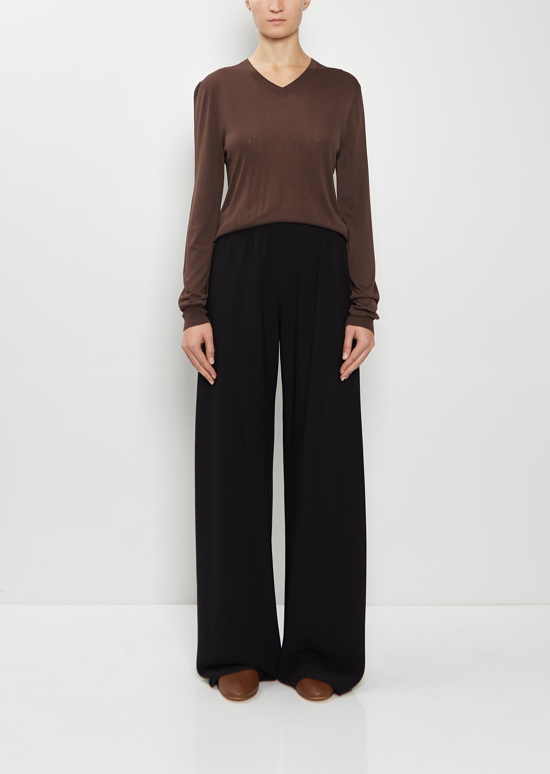 The Row signature pull-on pants with wide legs and a slim gathered elastic waistband in fluid double-faced cady.