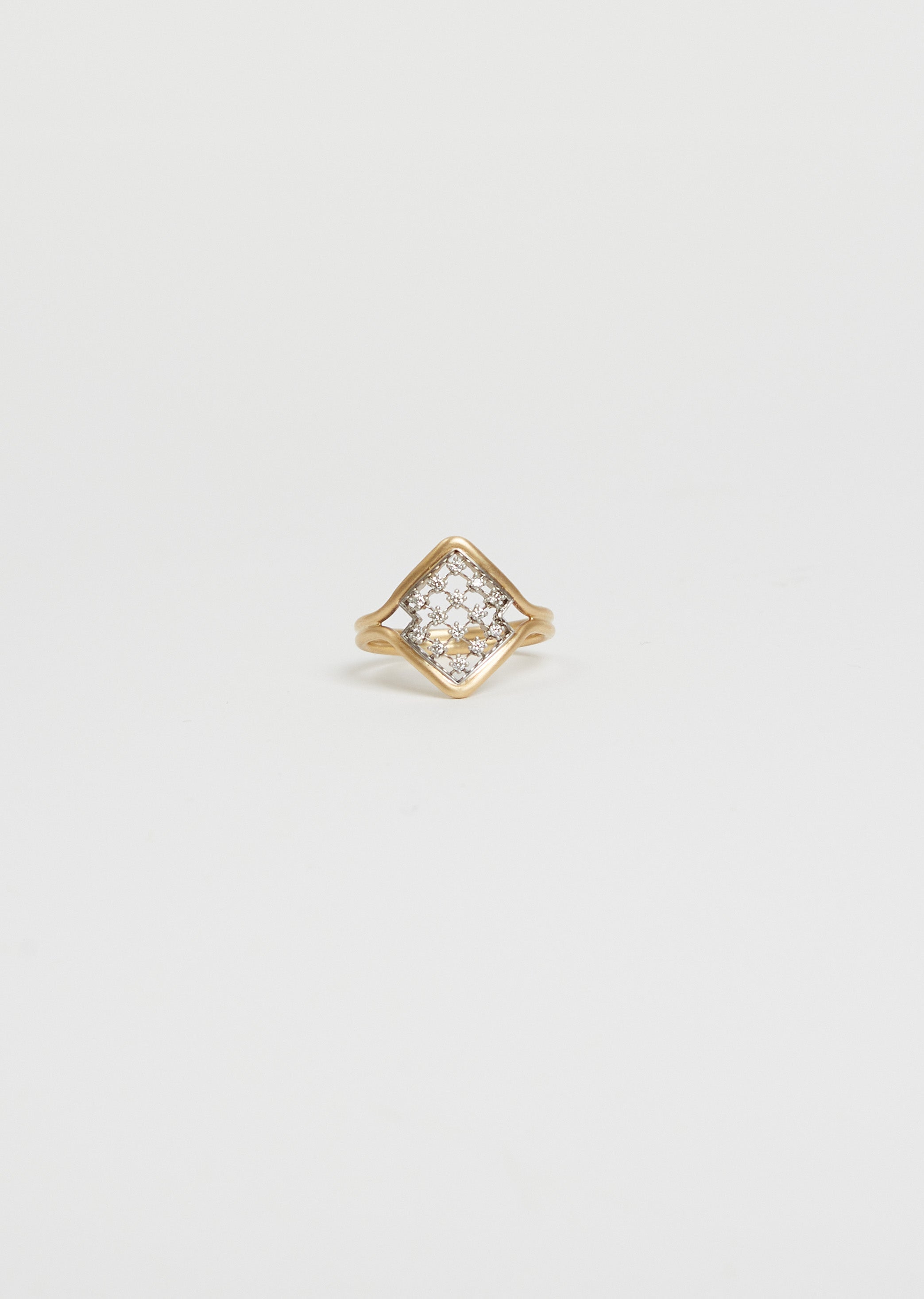 Nikollë Radi micro prong ring with 0.28 carat white diamonds and platinum lace set in 18k gold.