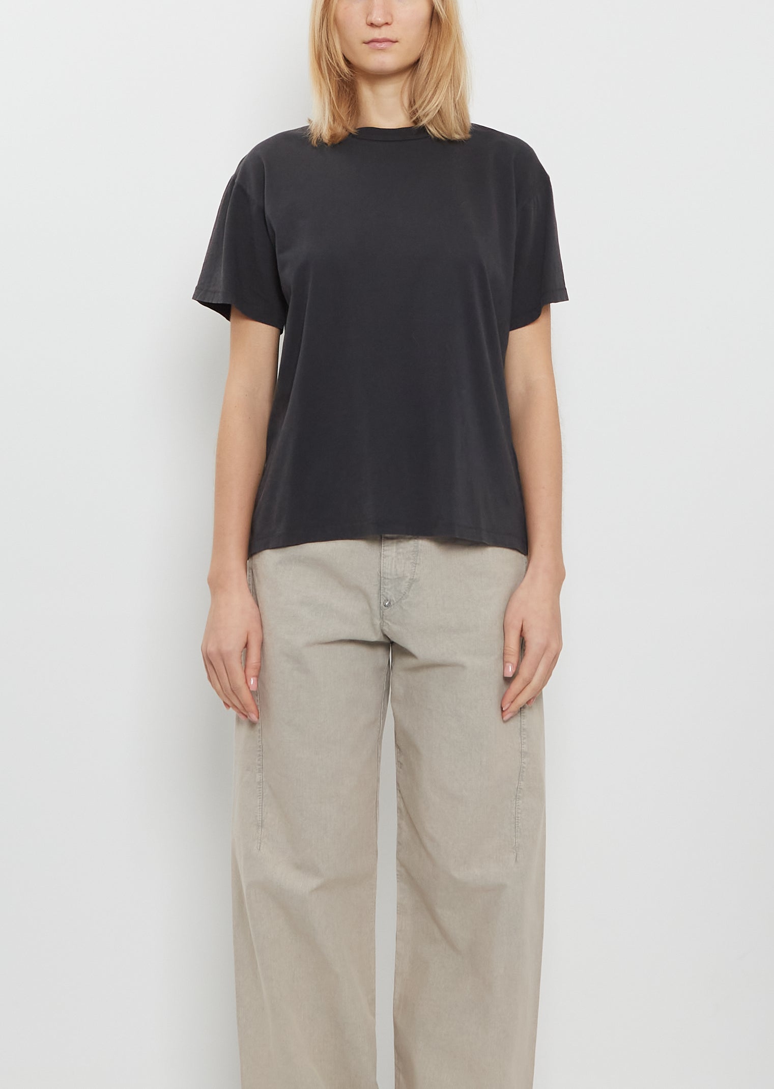 6397 black signature short sleeve boy tee with a crew neck and slightly dropped shoulders in a soft and lightweight pima cotton with a washed finish. Straight cut with a relaxed fit.