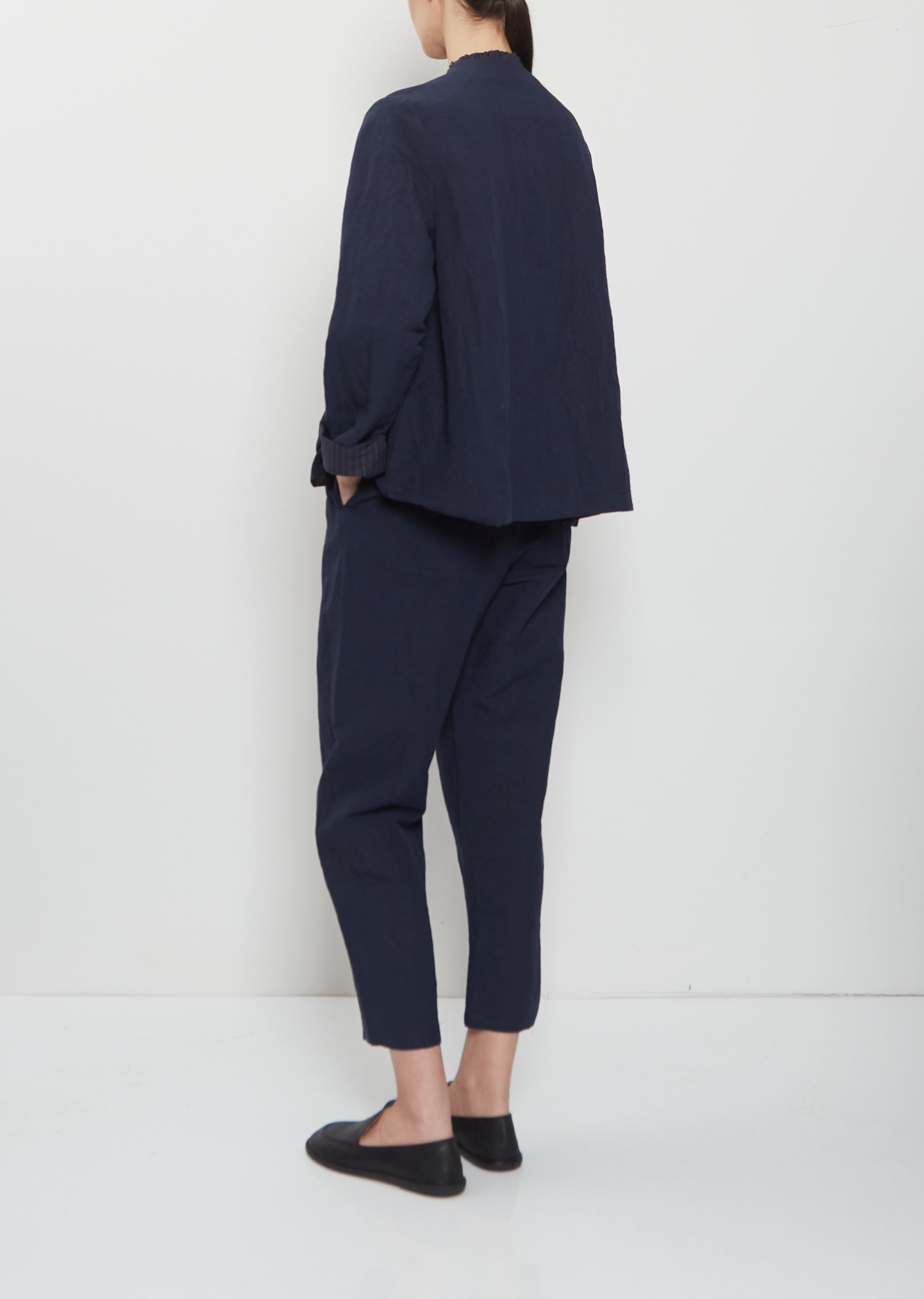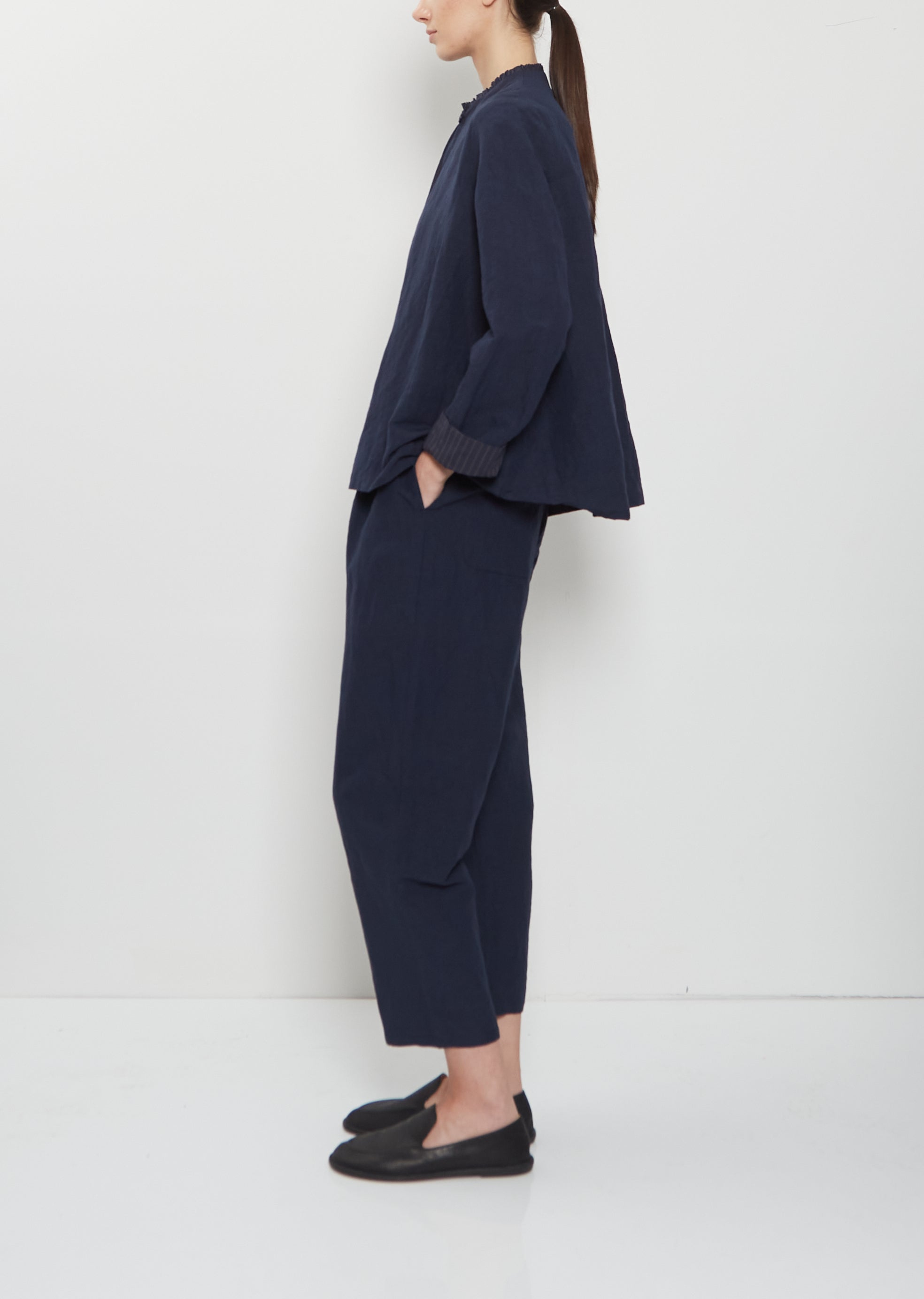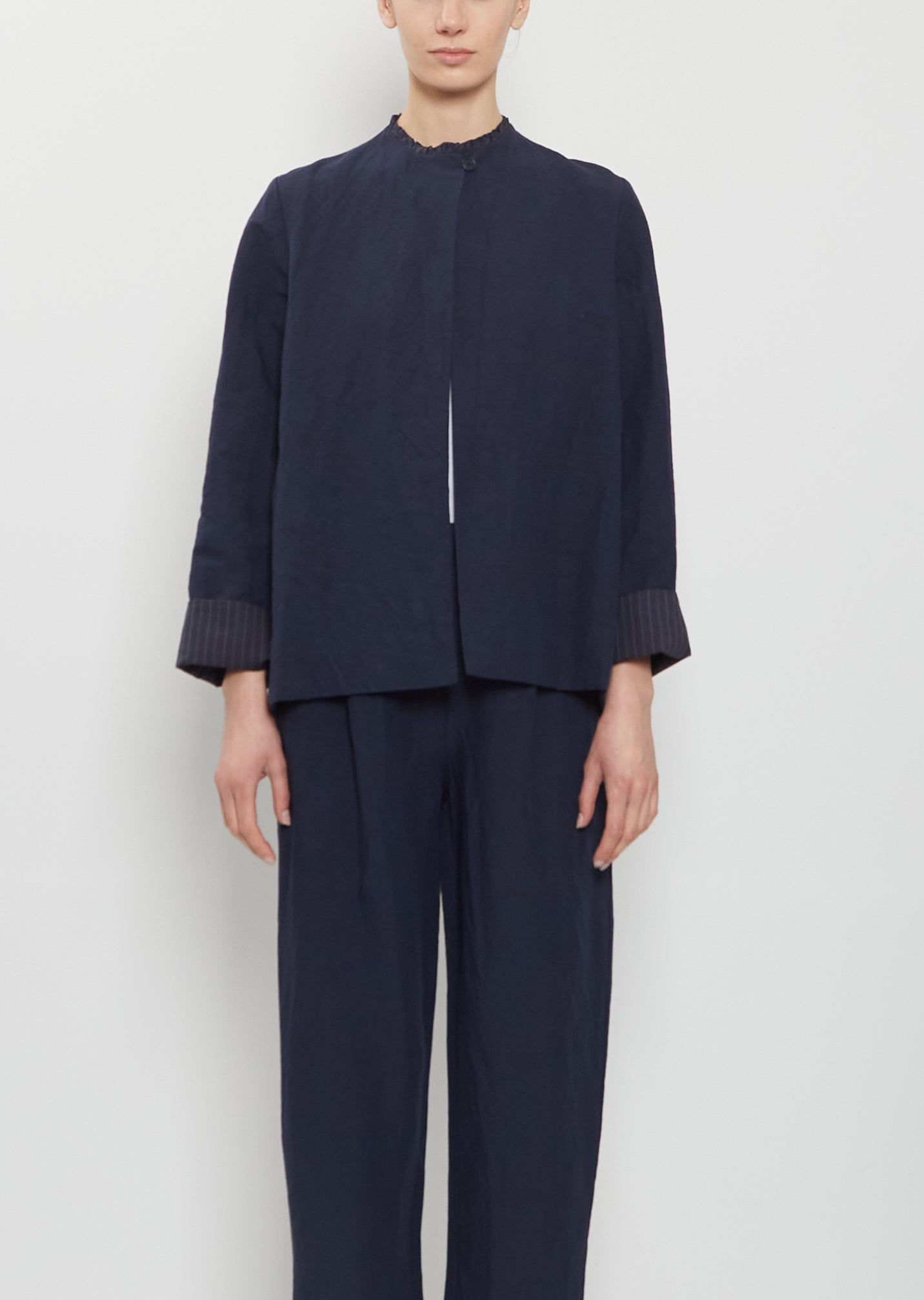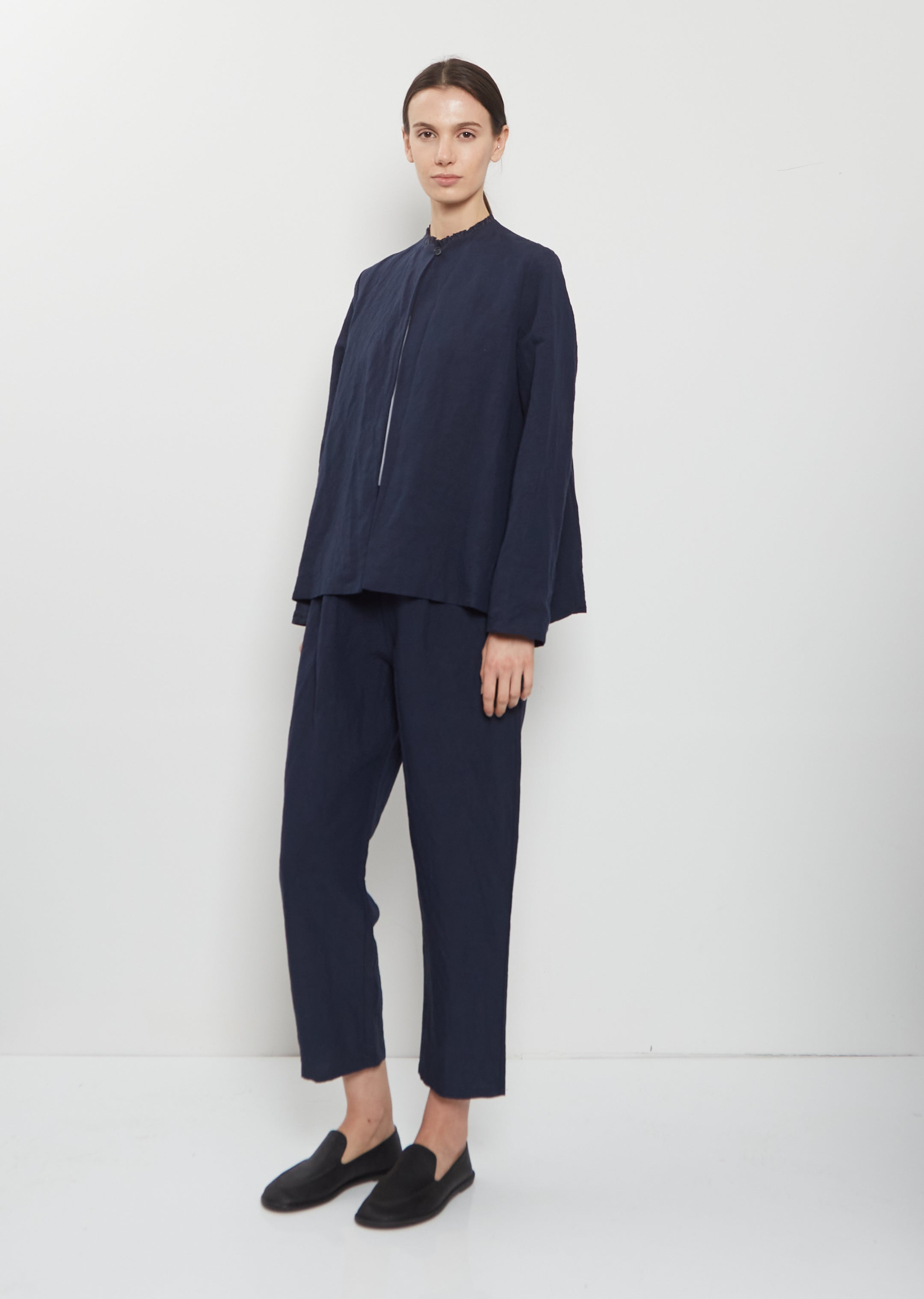 Ruche Collar Linen Jacket — Abyss