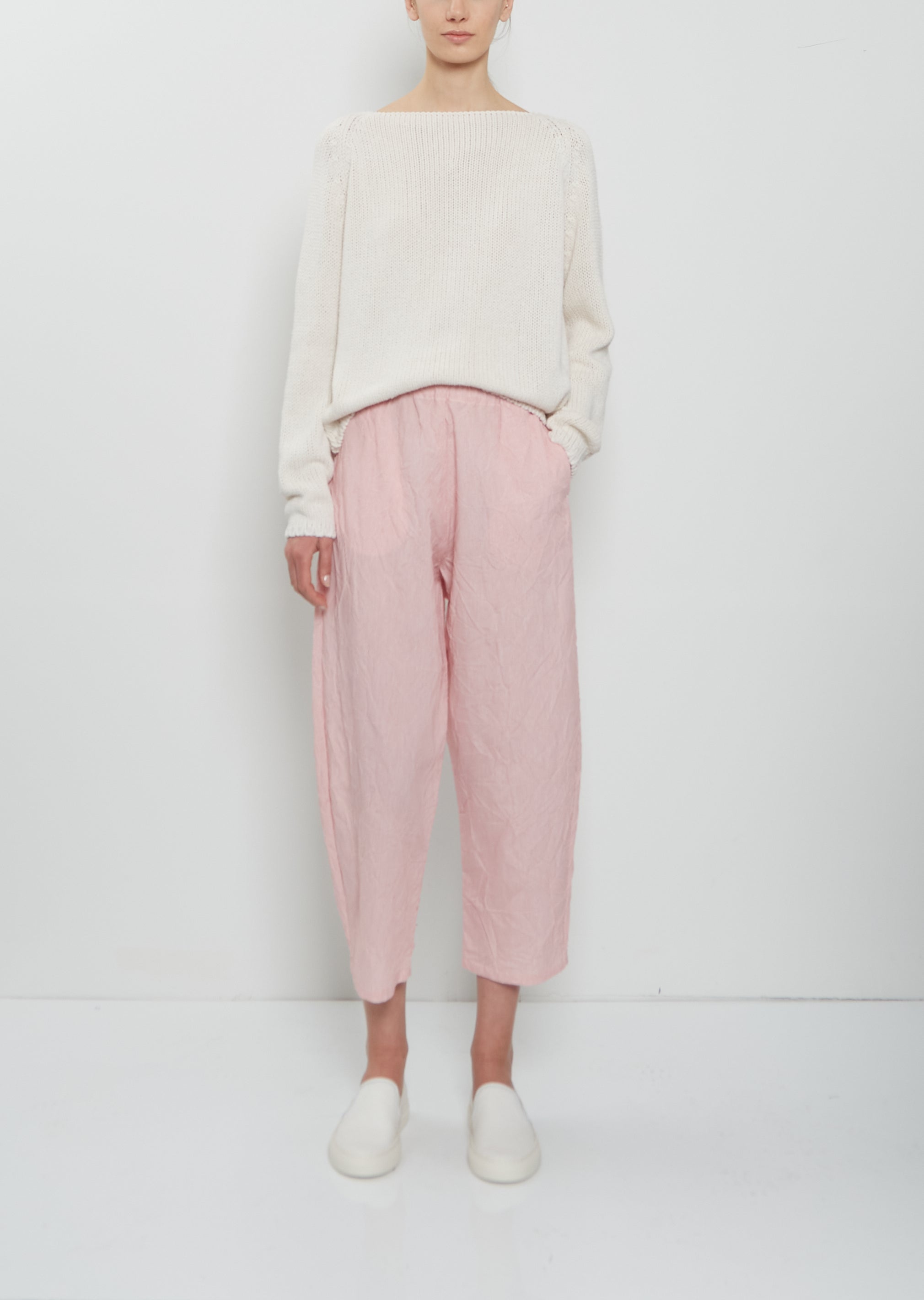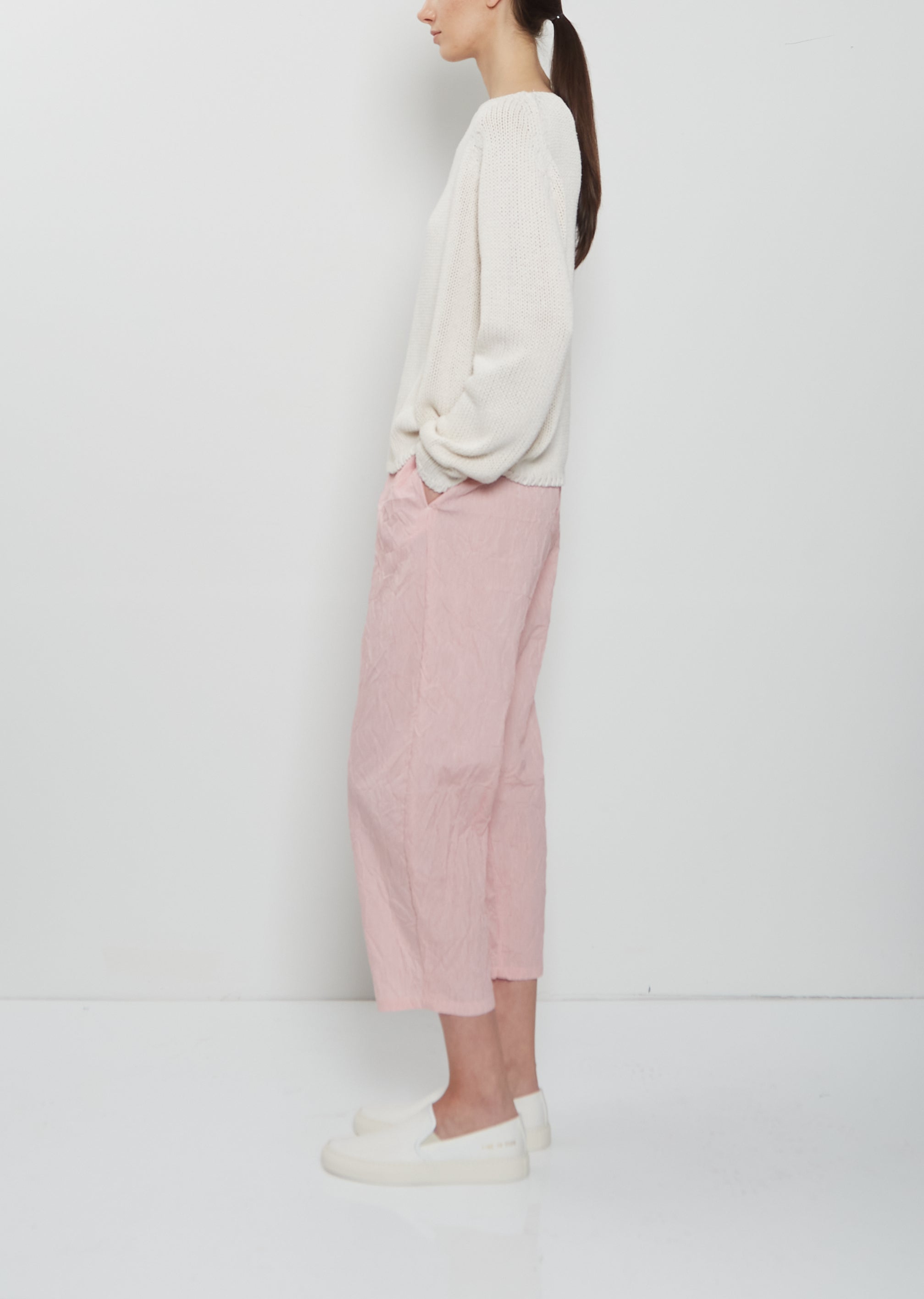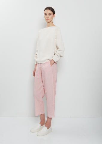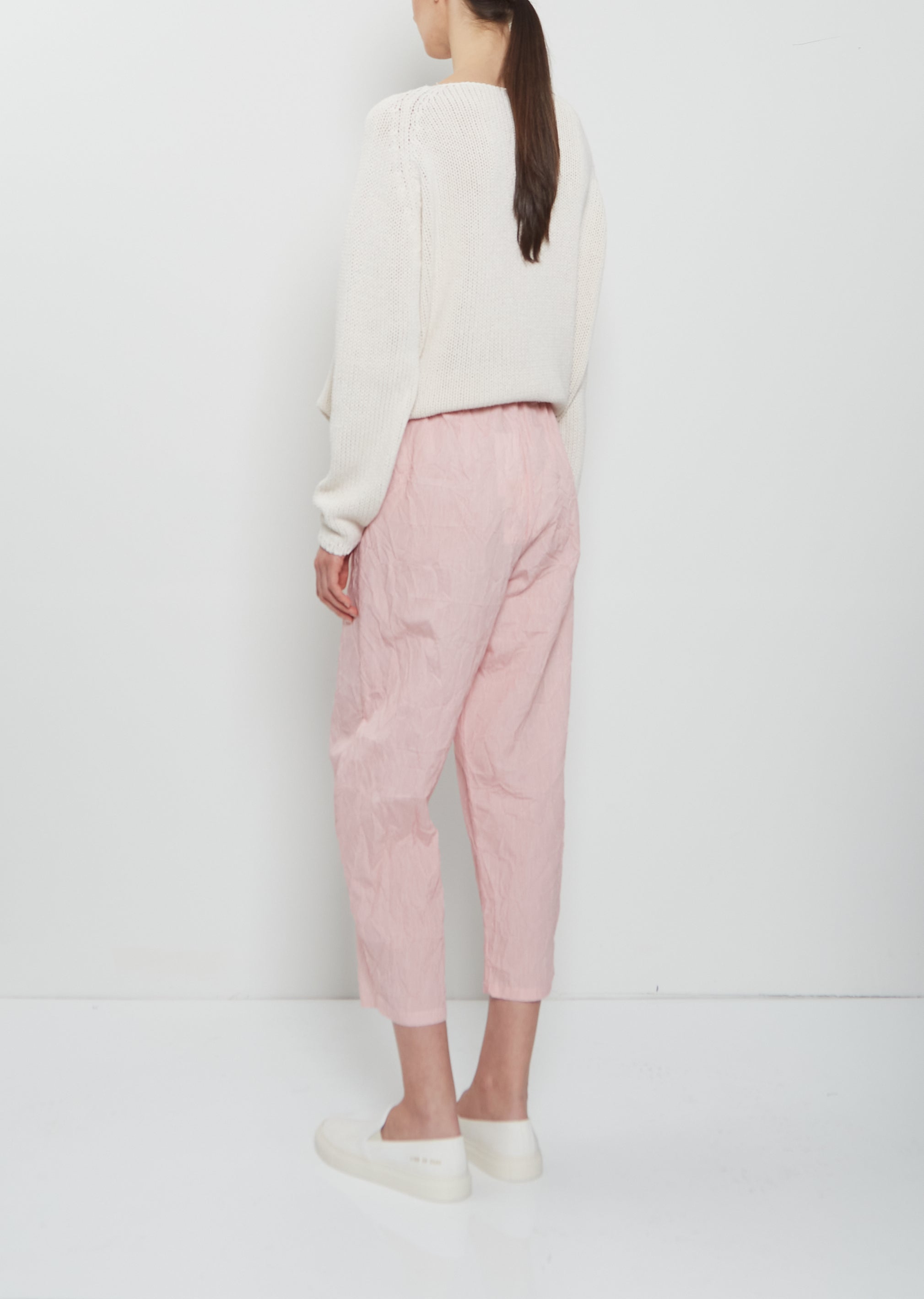 Apuntob red and white stripes pull-on cropped pant pant with wide, curved legs in a technical taffeta with a crinkled effect. Features an elasticated waist and side seam pockets. Relaxed, easy fit.