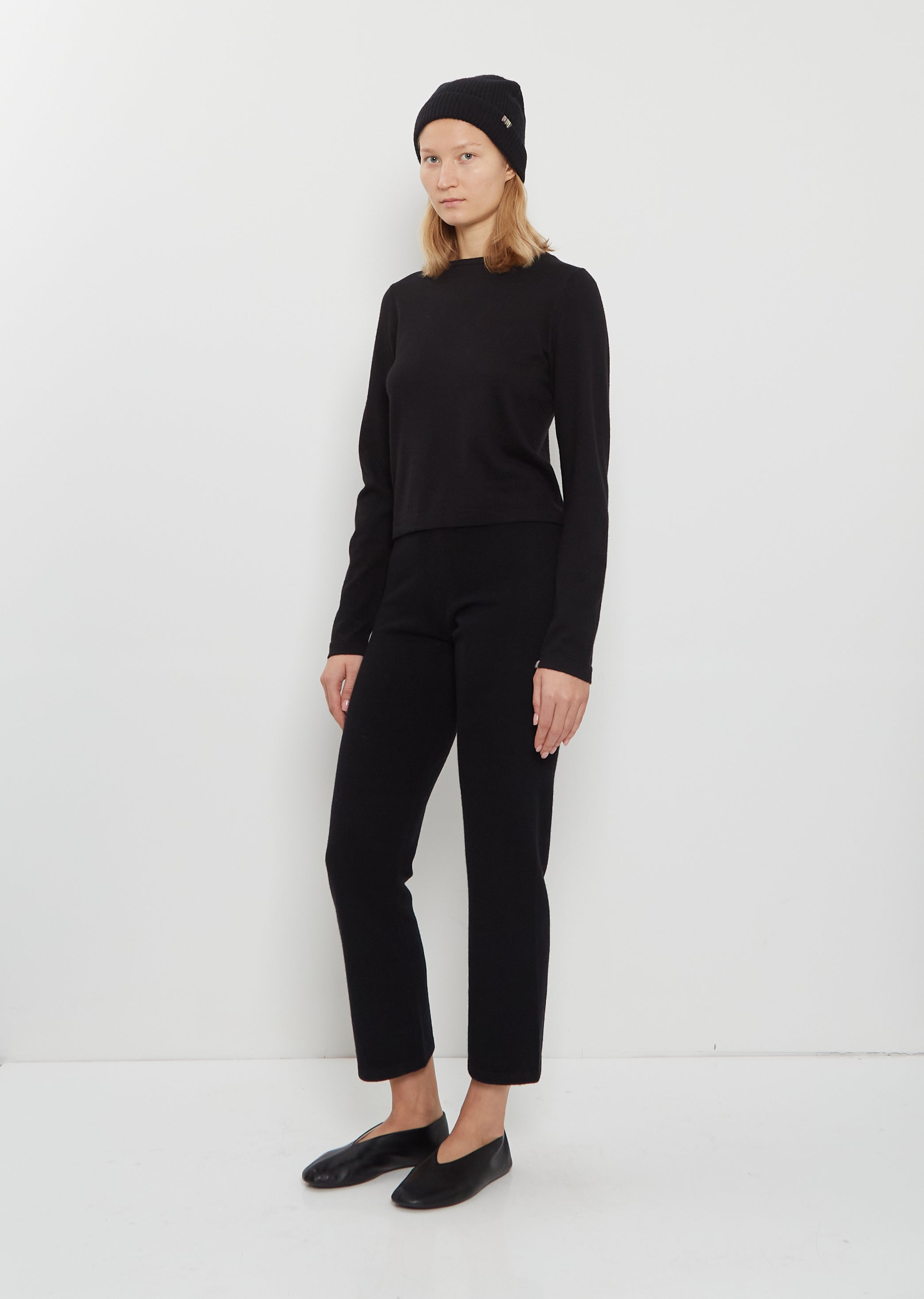 Extreme Cashmere raven black classic beanie hat in soft cashmere ribbed knit.