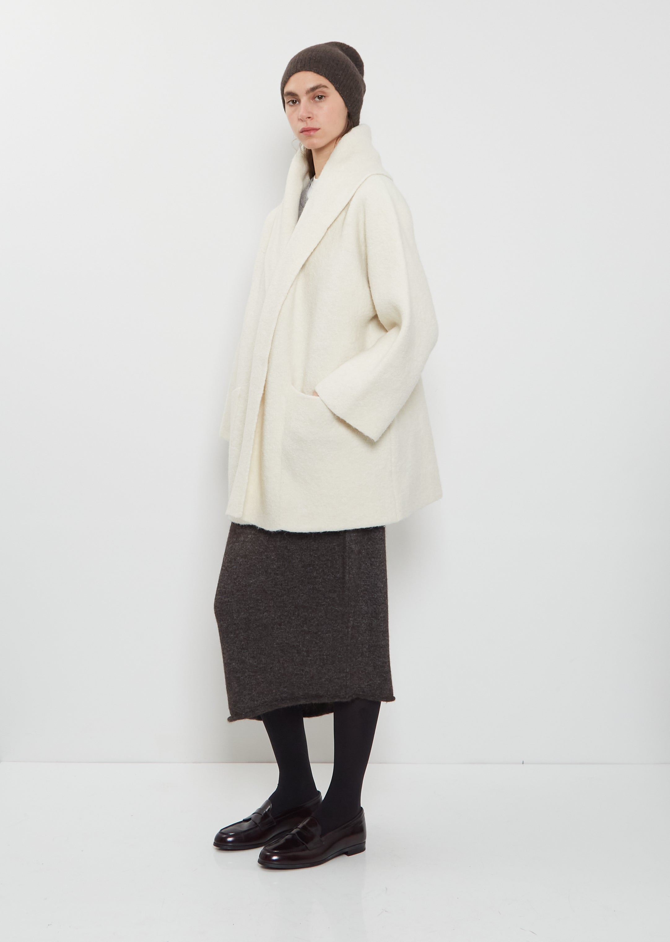 Lauren Manoogian brown hand-loomed beanie in soft ribbed alpaca, Pima cotton and fine merino wool blend with a subtle stretch.