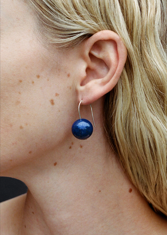 Sophie Buhai earrings handcrafted with a bold spherical lapis stud and sterling silver hook.