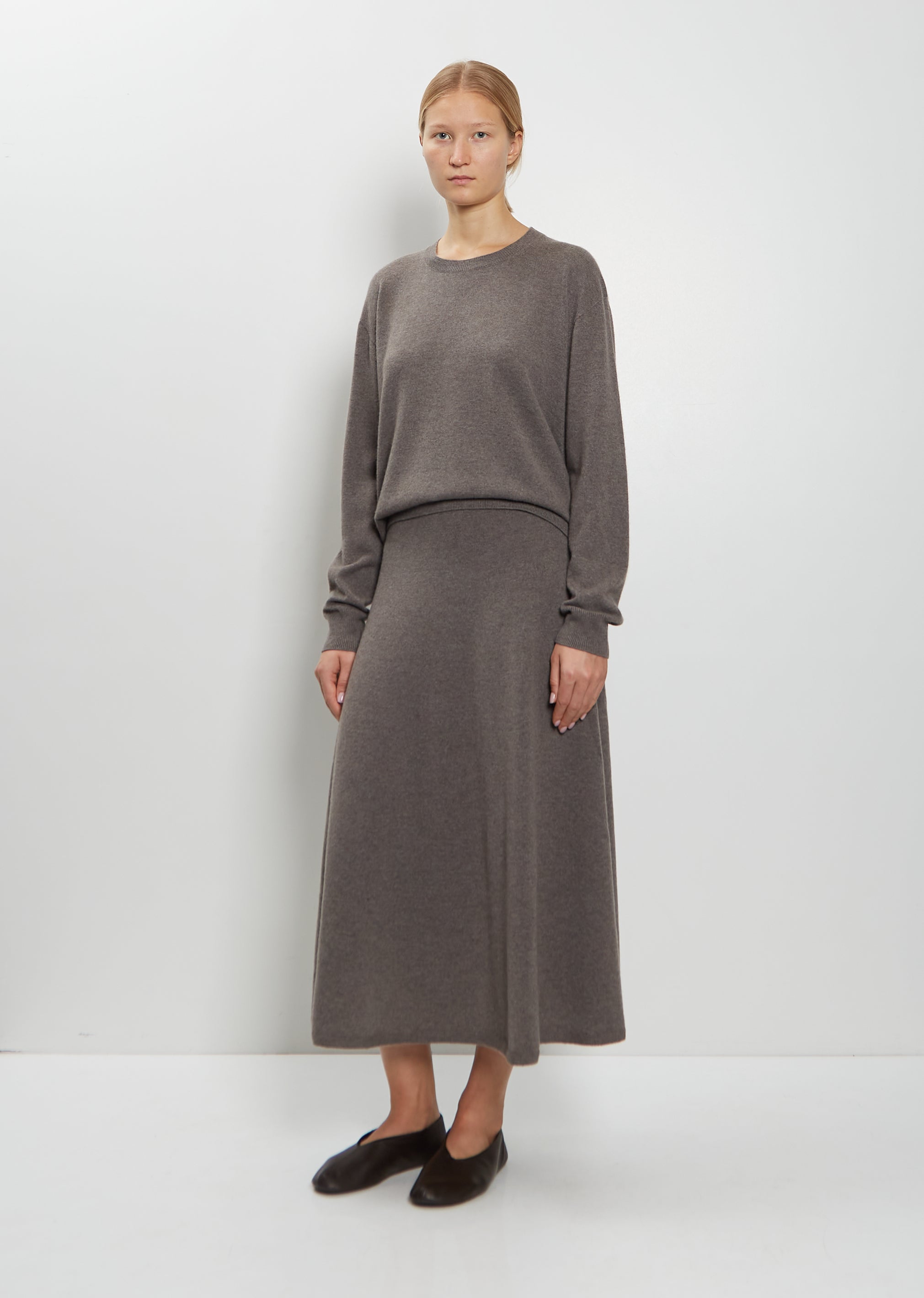 The Row brown sepia pull-on skirt with an elasticated waist and A-line structure in a mid-weight stretch goat cashmere knit.