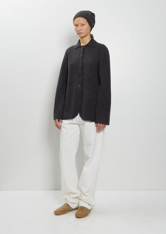 The Row grey large beanie in a soft chinky cashmere ribbed knit.