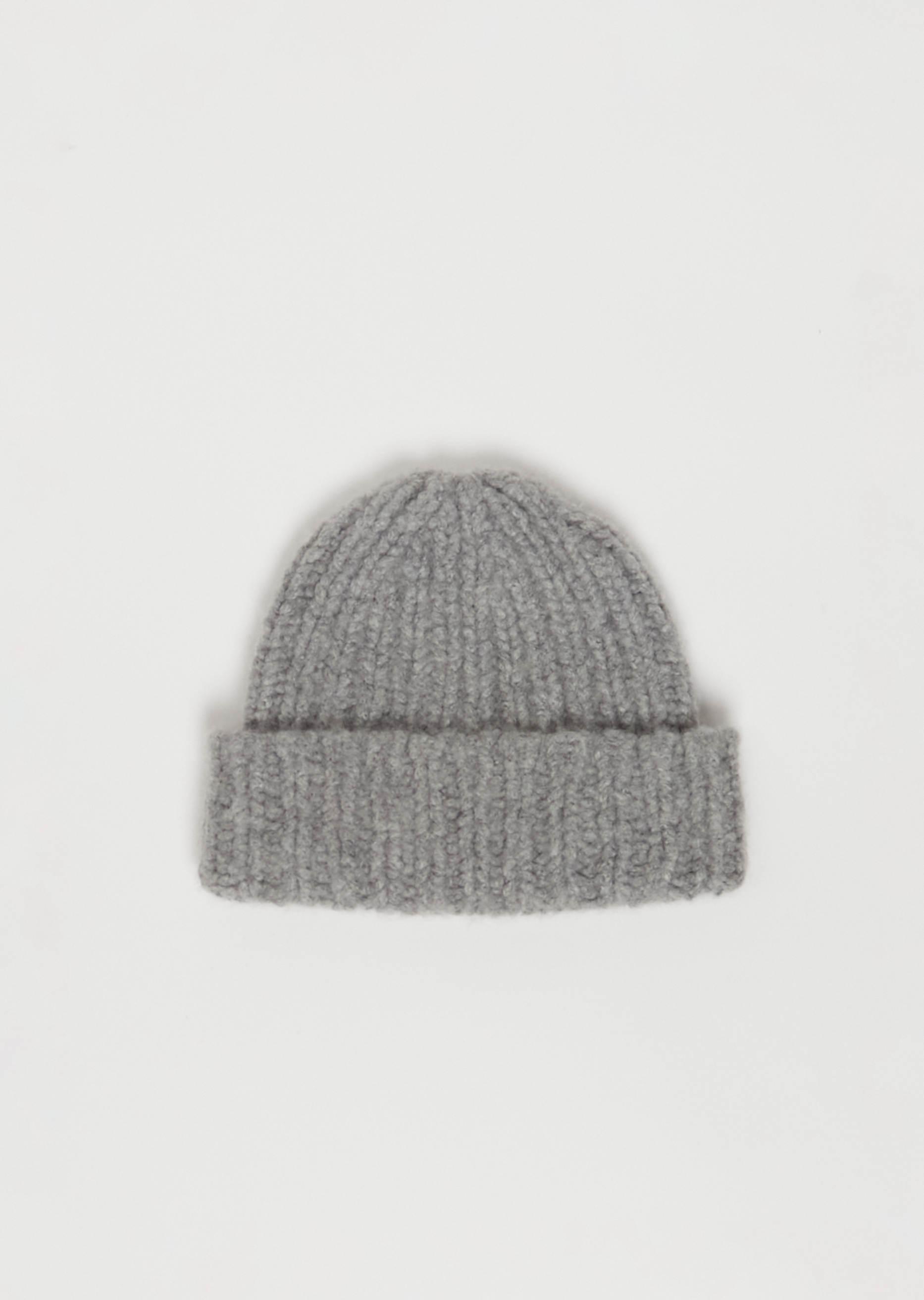 Wommelsdorff two-toned grey beanie hand knitted from the finest heavyweight cashmere and silk blend yarn in Berlin. Finished with a folded wide rib trim.