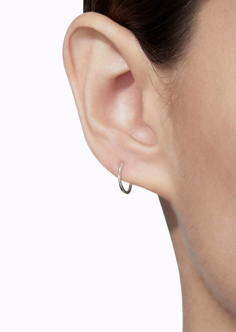 Shihara three-dimensional 10-millimeter seamless hinged oval earring in white gold. Also suitable for cartilage piercings.