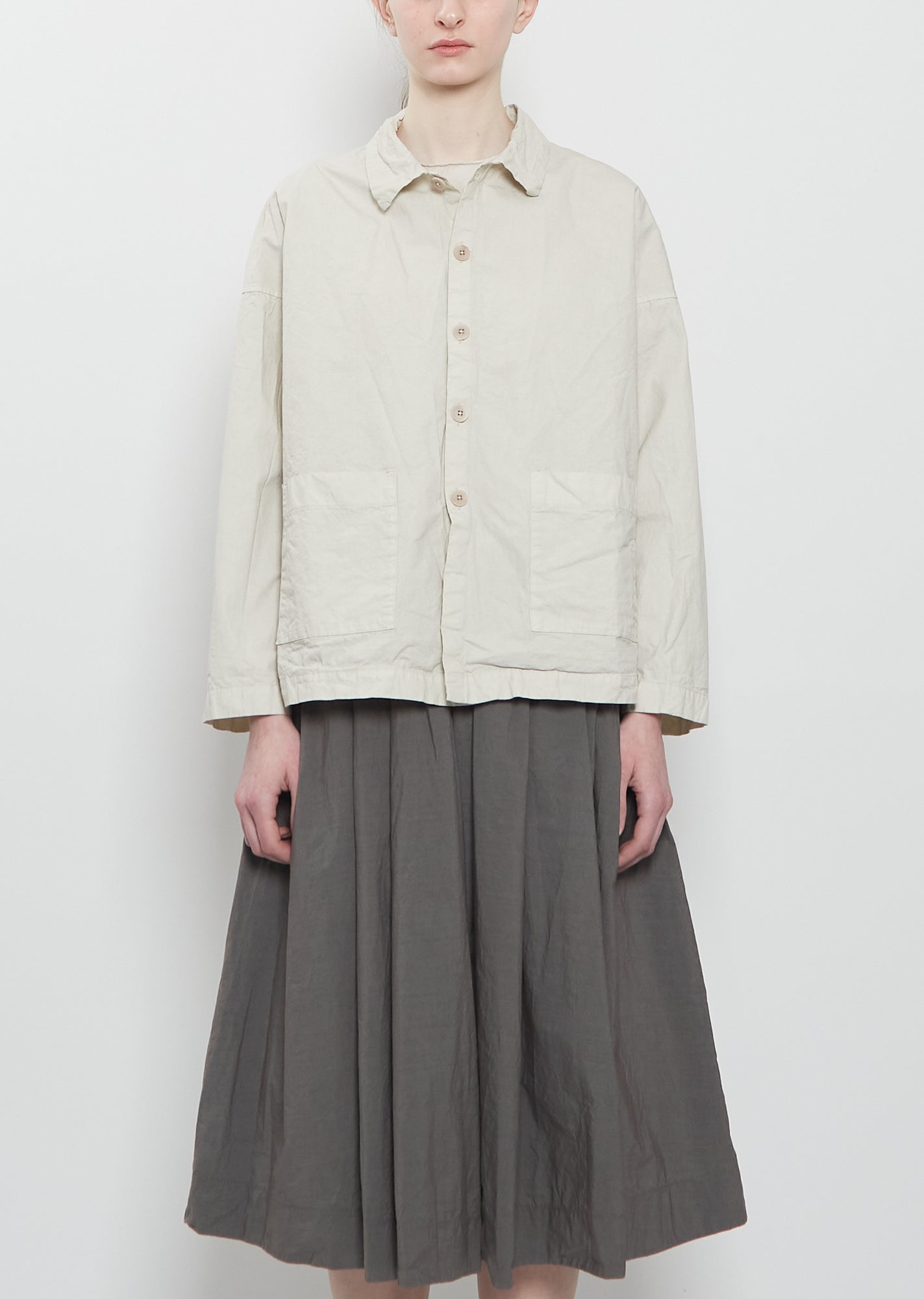 Compact Cotton Overshirt Jacket — Pebble