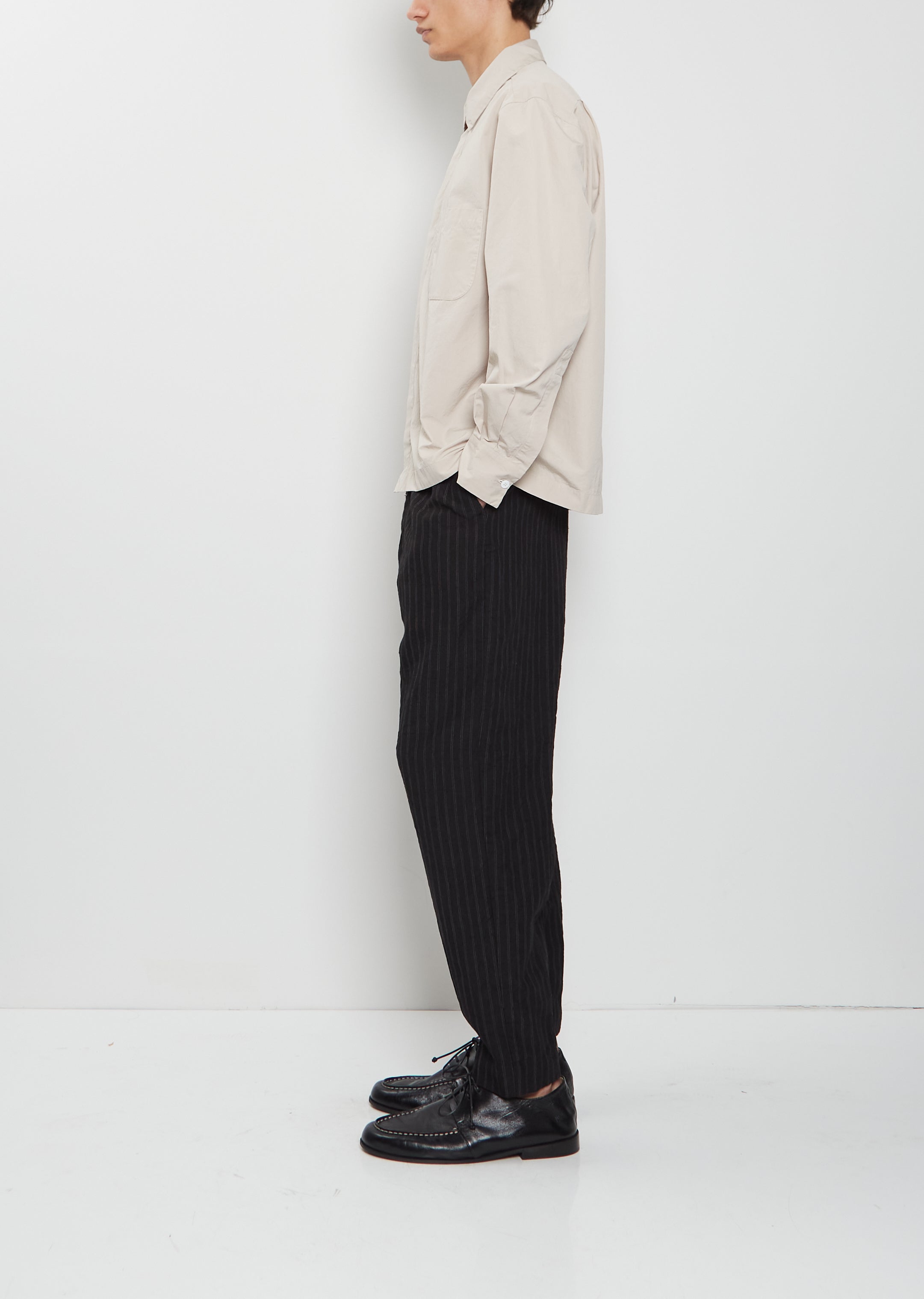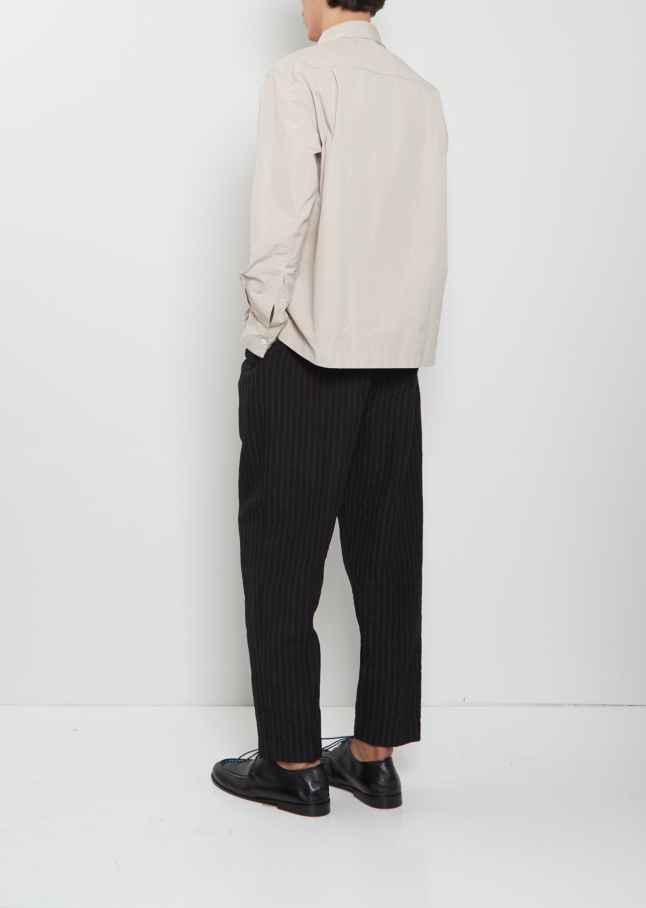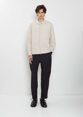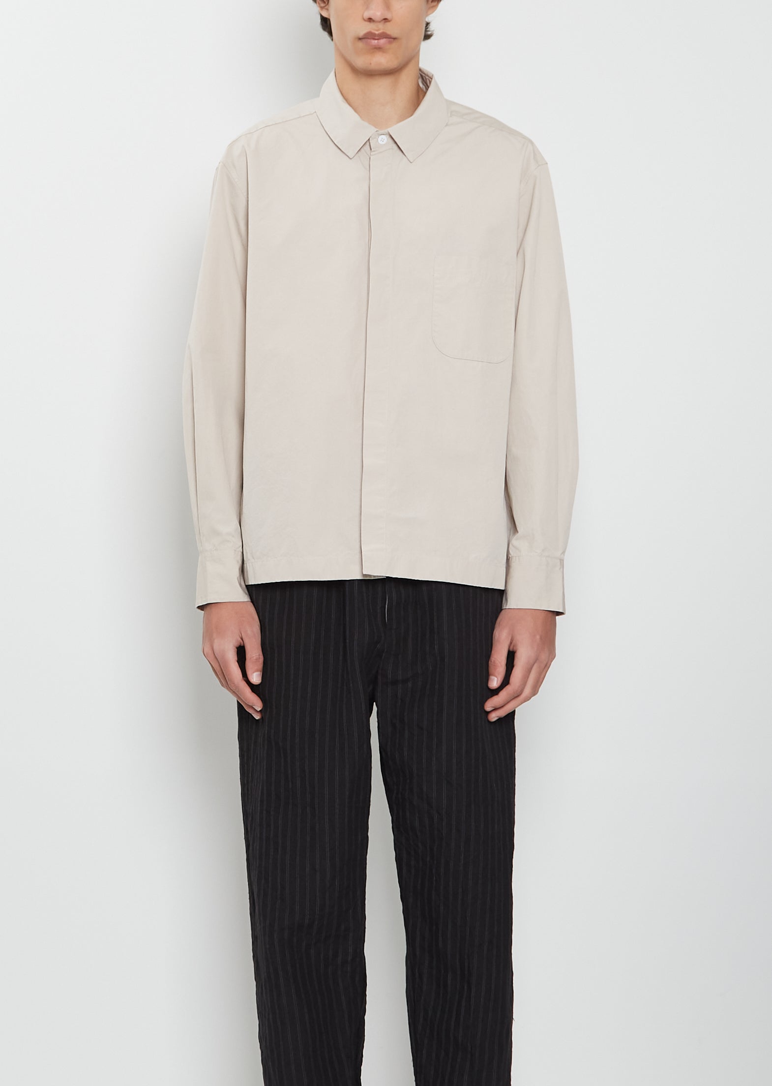 Bergfabel sand beige long sleeve overshirt with a concealed button placket and straight hem in dense cotton. Features a classic collar and buttoned cuffs. Relaxed fit.