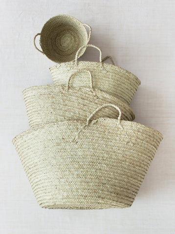 dosa natural basket in the large size with two short top handles hand-crafted in palm. Part of Standard Issue, dosa's permanent collection.