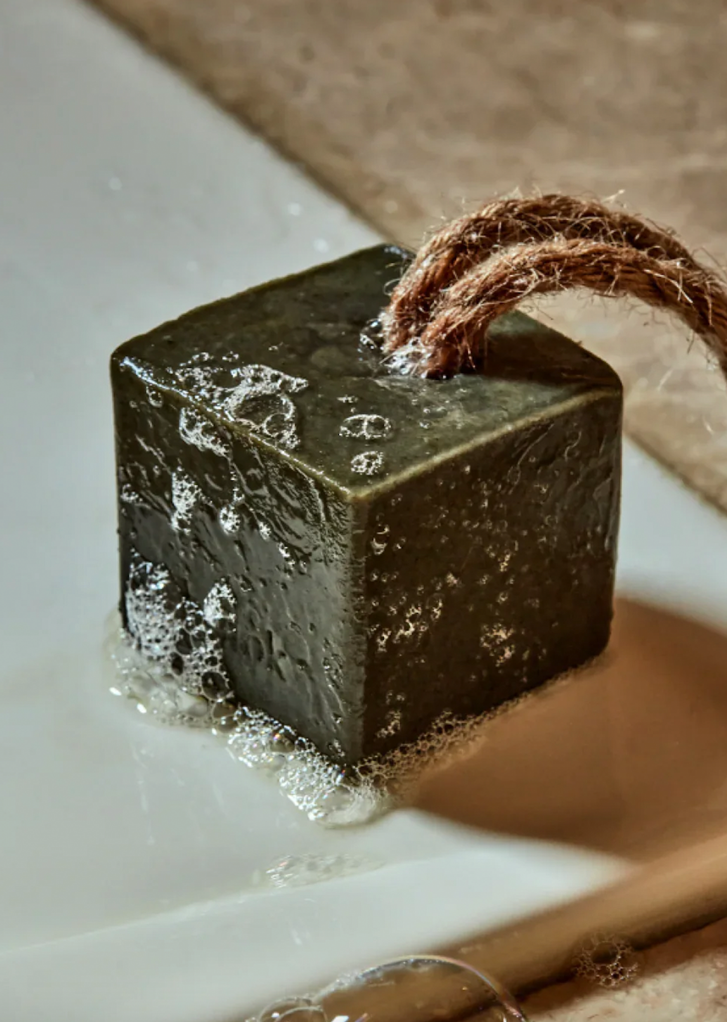 Ingredients: Cocos Nucifera (Coconut) Oil, Jeju Hinoki Cypress, Olea Europaea (Olive) Fruit Oil, Sodium Hydroxide, Brassica Napus Seed Oil, Persea Gratissima (Avocado) Oil, Butyrospermum Parkii (Shea) Butter, Ricinus Communis (Castor) Seed Oil, Chlorella Vulgaris Powder, Hinoki Cypress Oil, Citrus Bergamia (Bergamot) Peel Oil, Melaleuca Alternifolia (Tea Tree) Leaf Oil, Rosmarinus Officinalis (Rosemary) Leaf Oil, Pogostemon Cablin (Patchouli) Leaf Oil, Bamboo Charcoal Powder, Limonene, Linalool (Naturally occurring in essential oils.