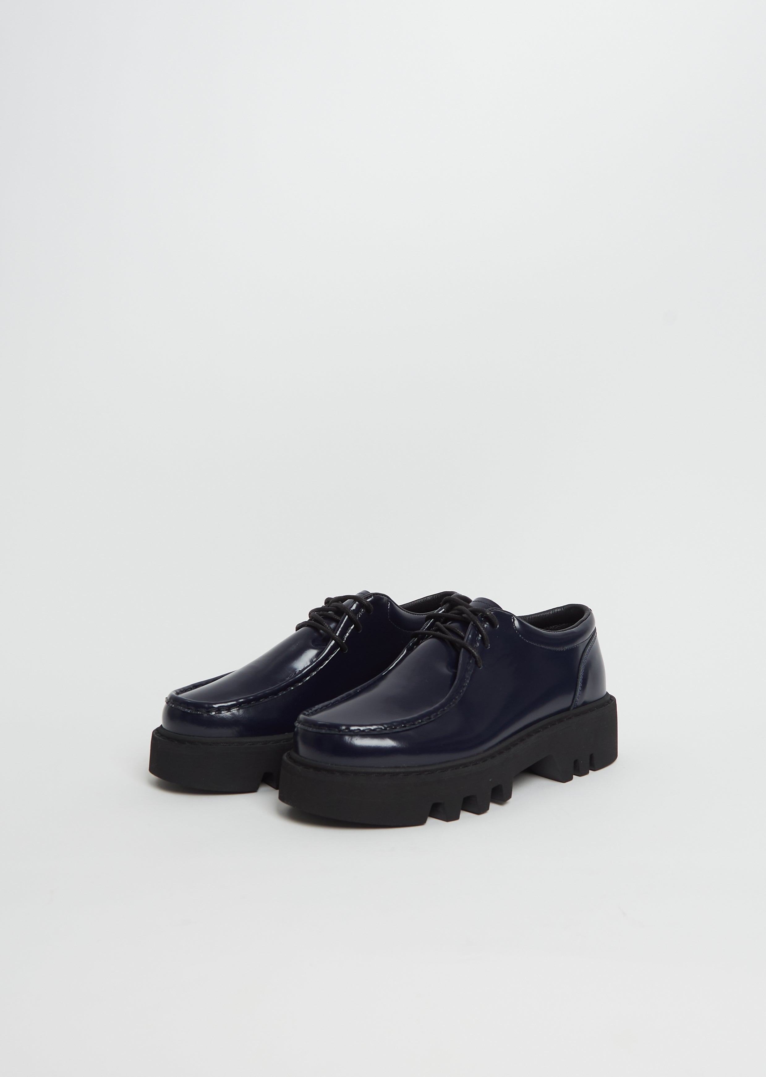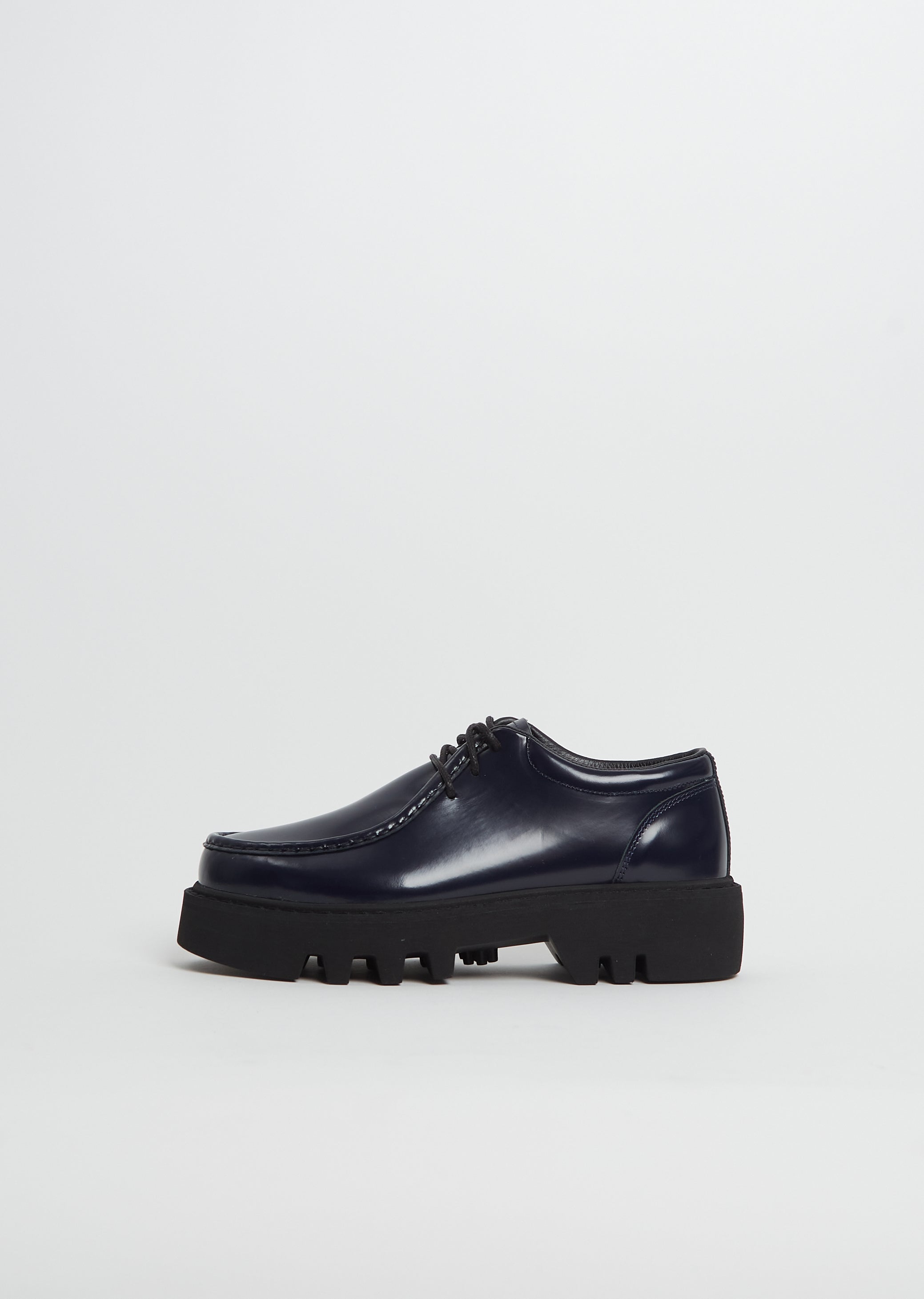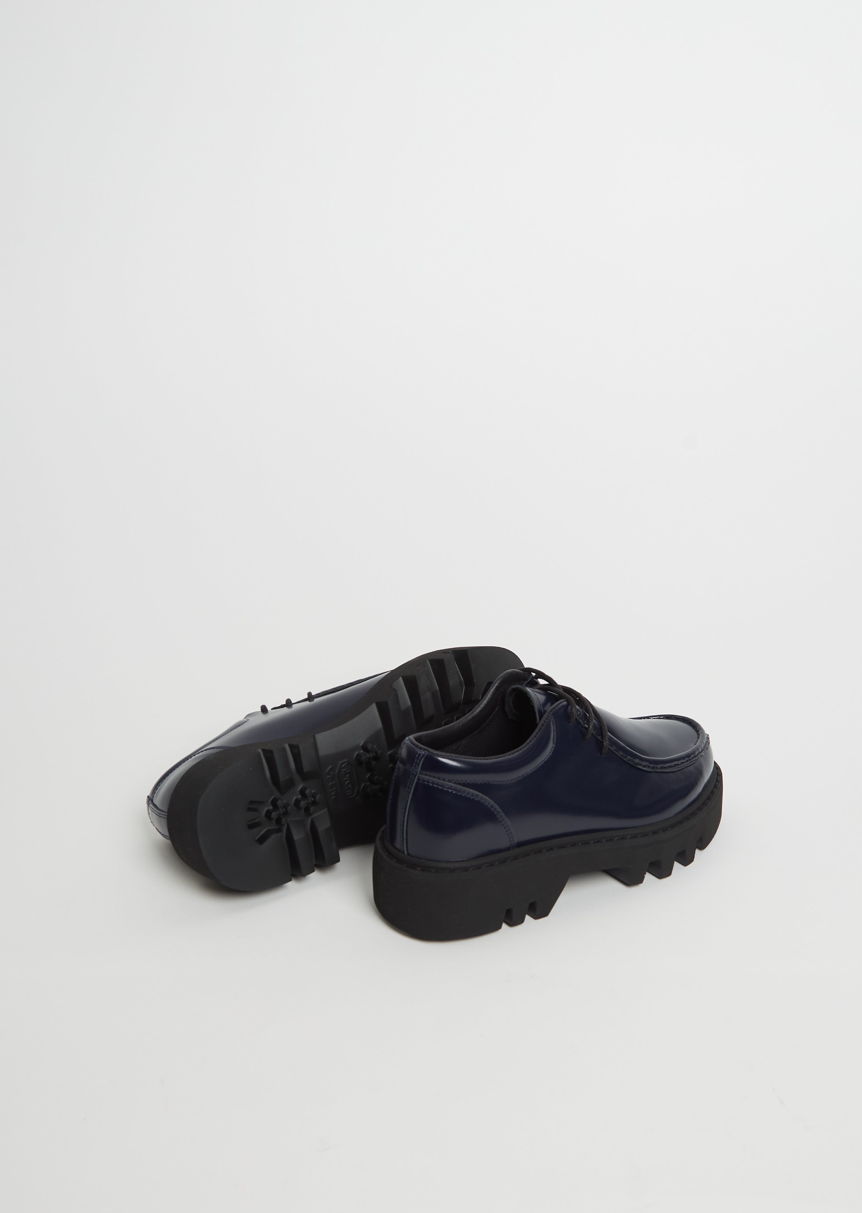 Sofie D'Hoore ankle-high lace-up shoe with tonal top-stitch detailing crafted in brushed leather with a shiny finish. Features tonal laces, a cushioned insole and a chunky rubber treaded sole.
