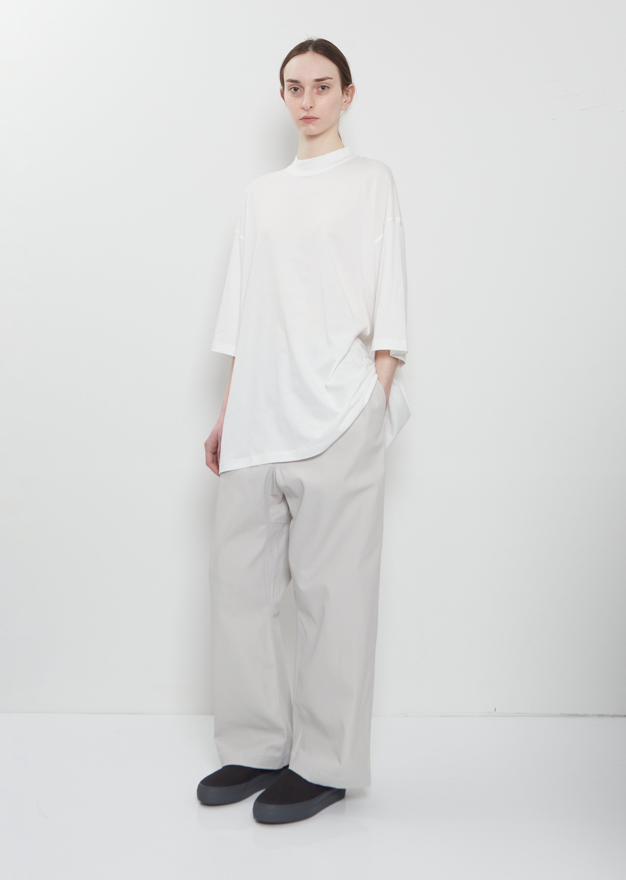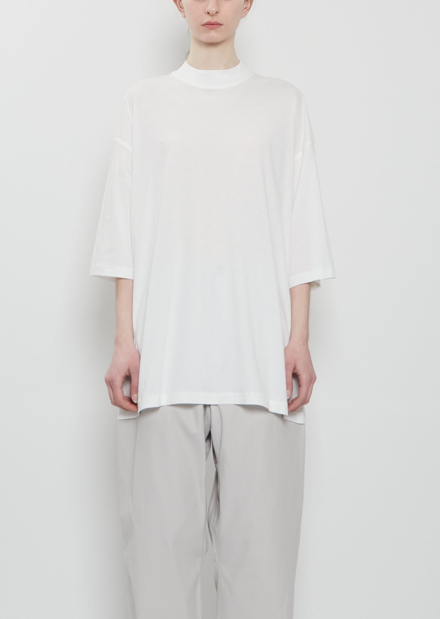 Sofie D'Hoore off-white oversized t-shirt with a high crew neck and dropped shoulders in super fine cotton jersey. Features wide elbow-length sleeves and a straight hem. Relaxed, oversized fit.
