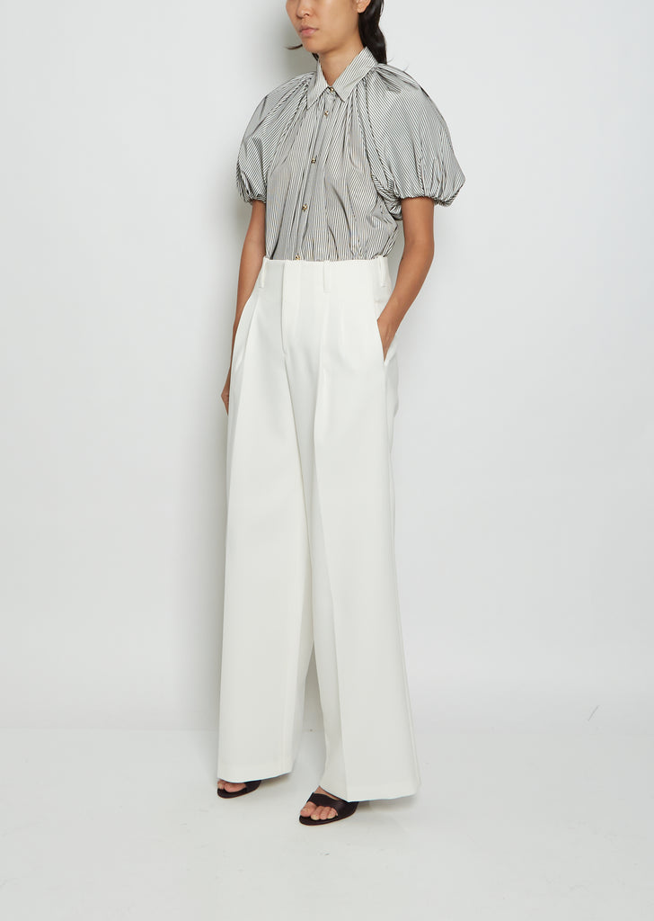 Ashlyn soft white wide-leg trousers with pleated front made from a fluid bonded crepe.